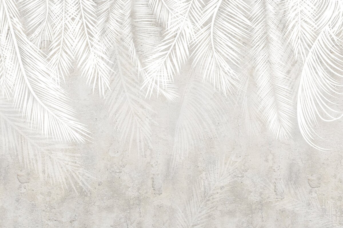 Papier peint : Feuilles de Palmier Blanches sur Fond en Béton