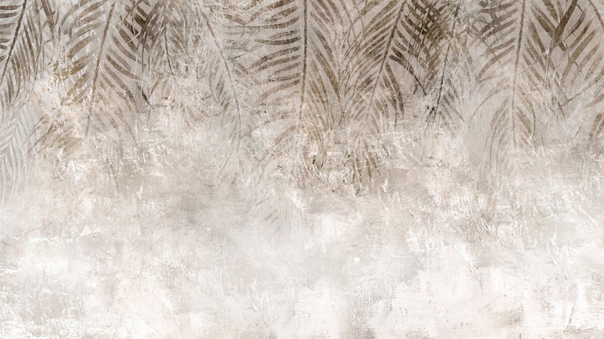 Papier peint : Feuilles de palmier brunes sur fond en béton style loft