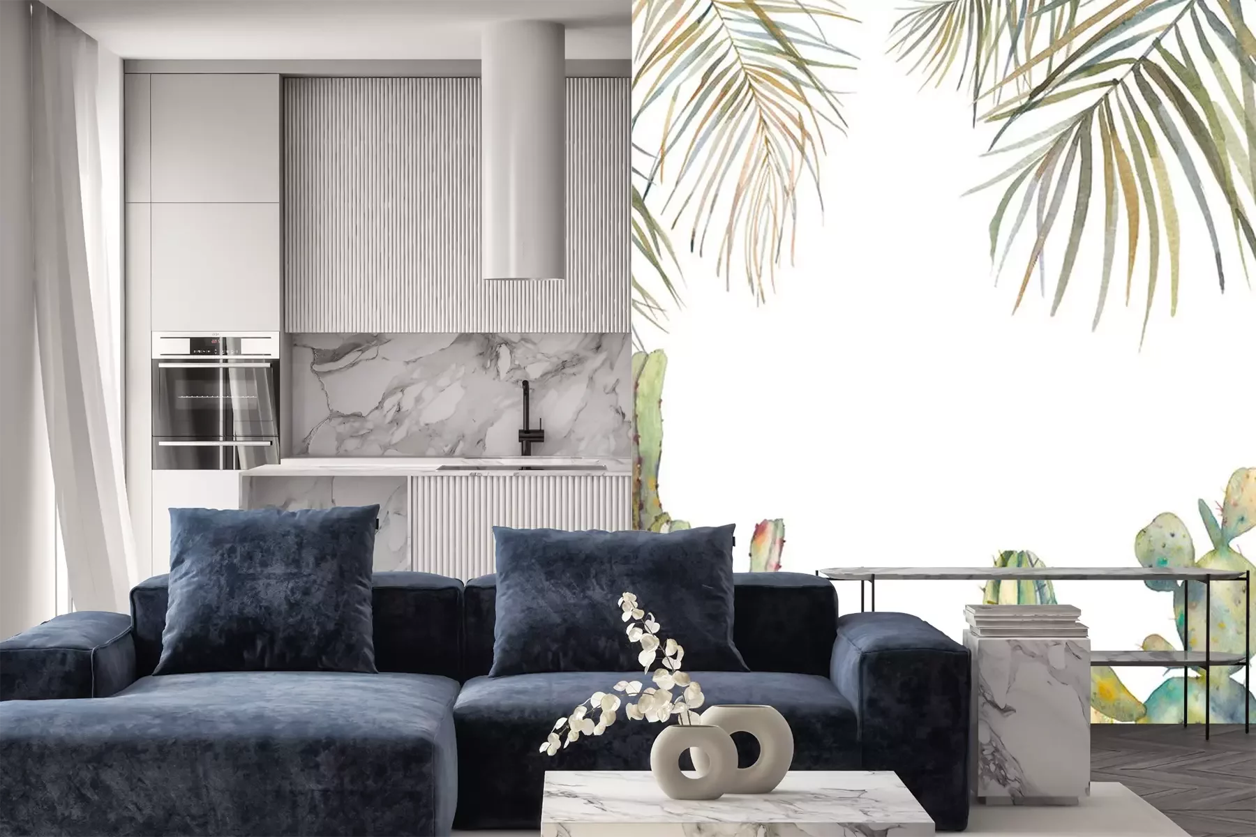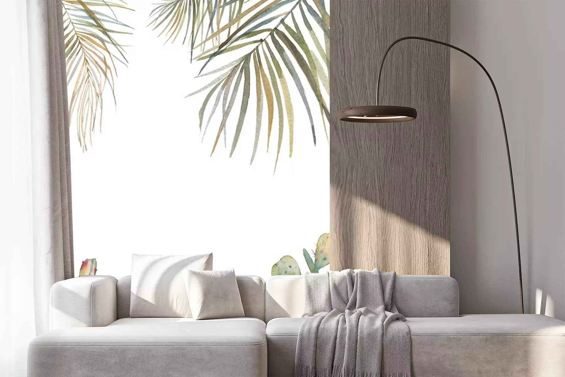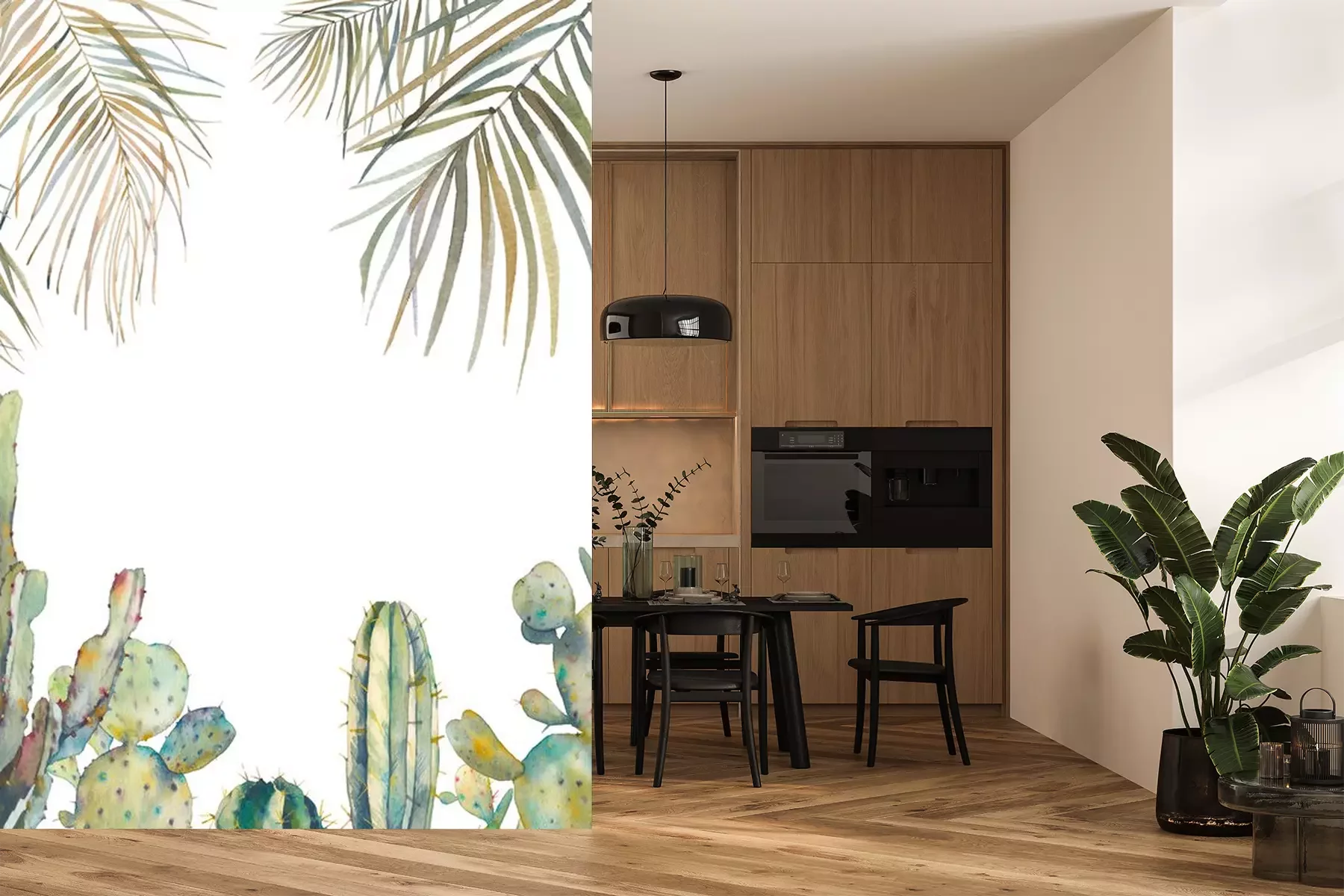Papier peint  Feuilles de palmier et cactus en aquarelle