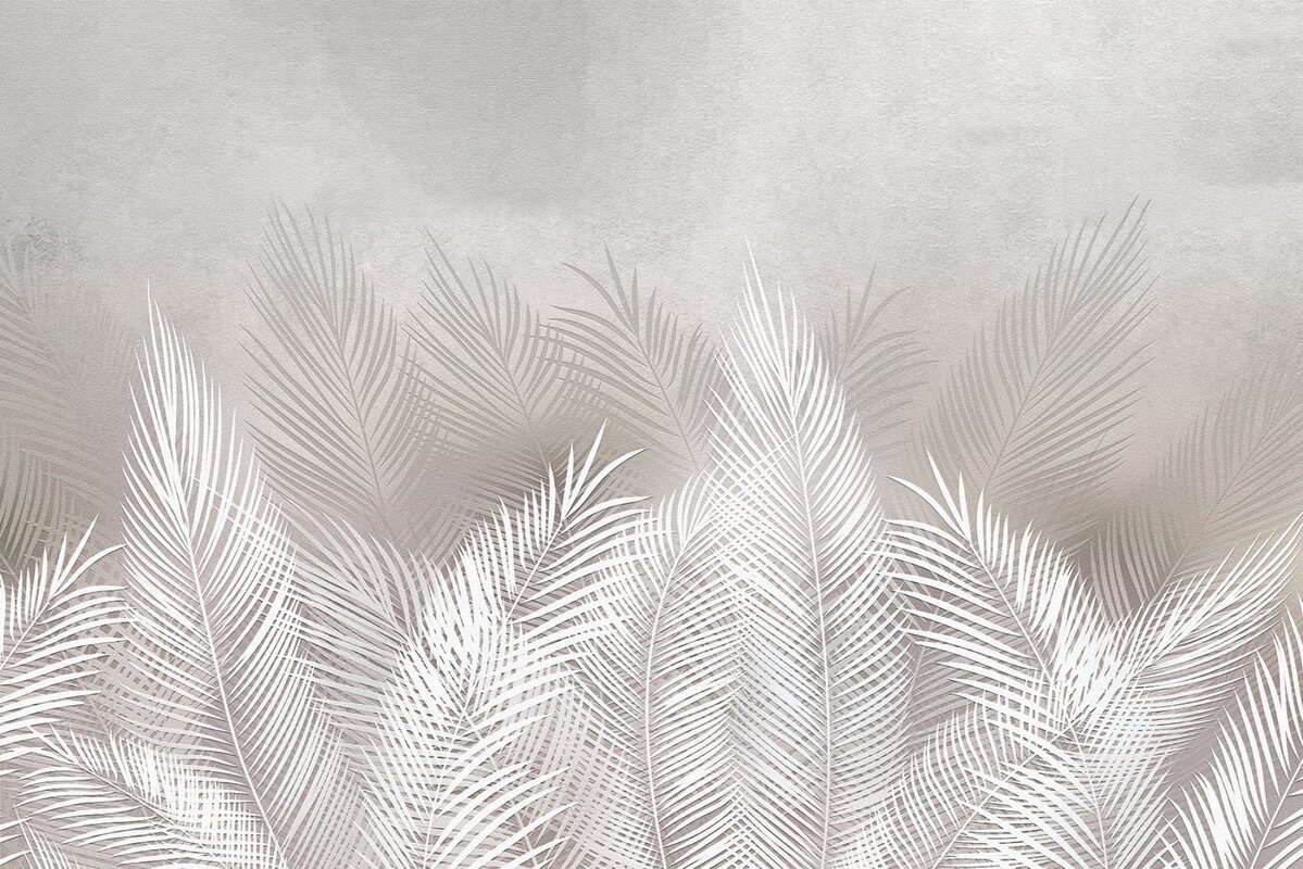 Papier peint : Feuilles de palmier motif botanique sur texture béton