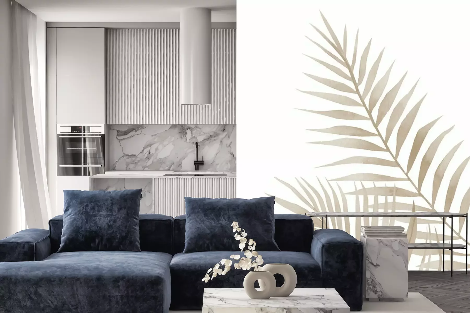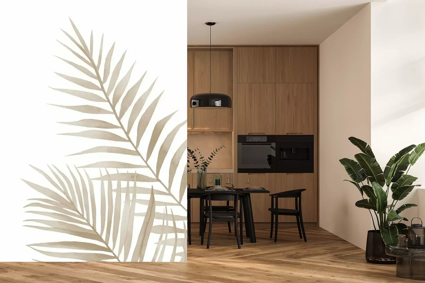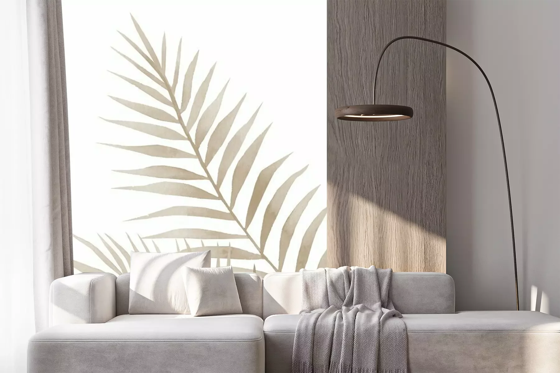 Feuilles exotiques beiges sur fond blanc