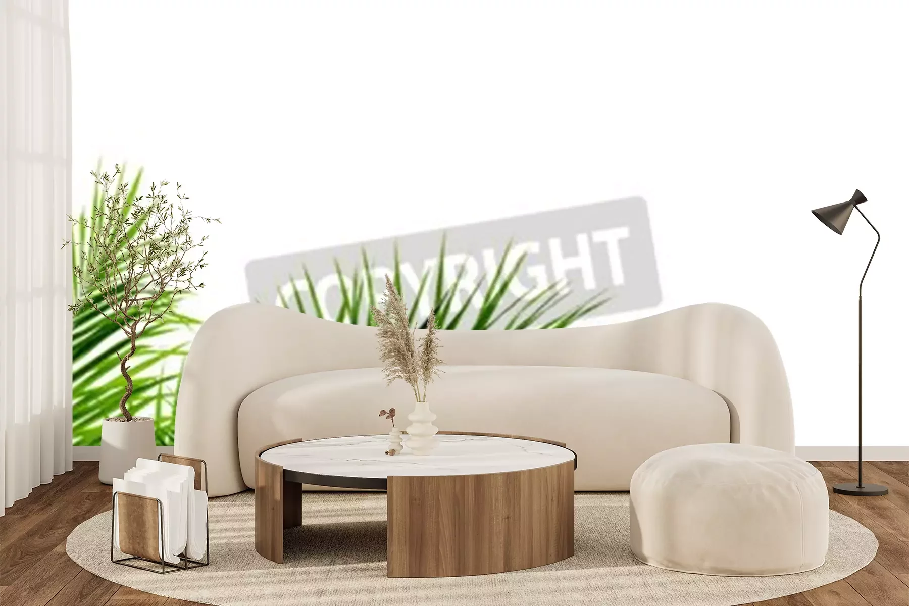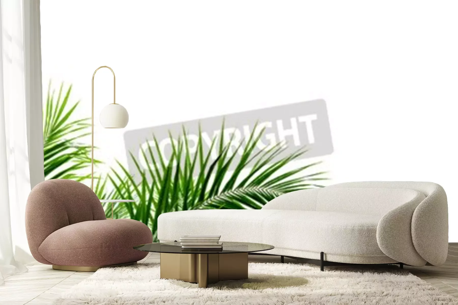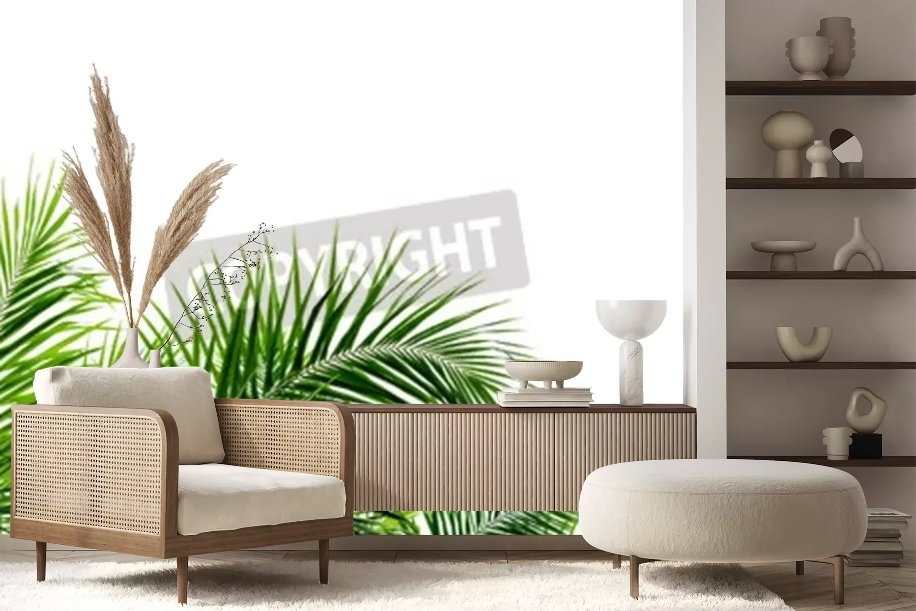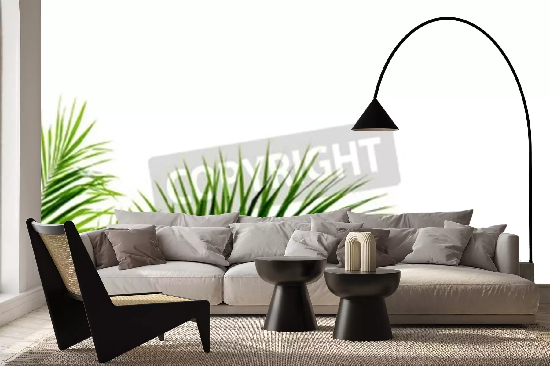 Papier peint  Feuilles de palmier sur fond blanc