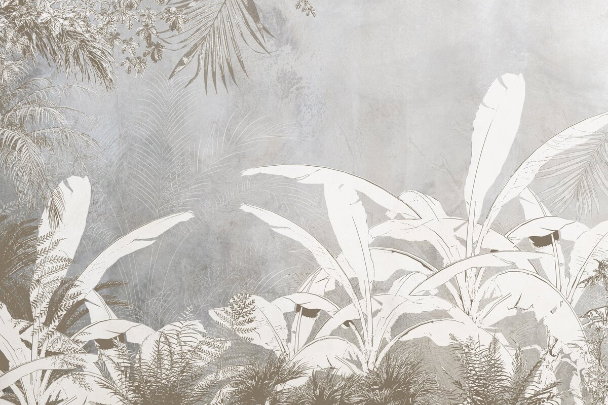 Papier peint : Feuilles de palmier tropicales sur béton