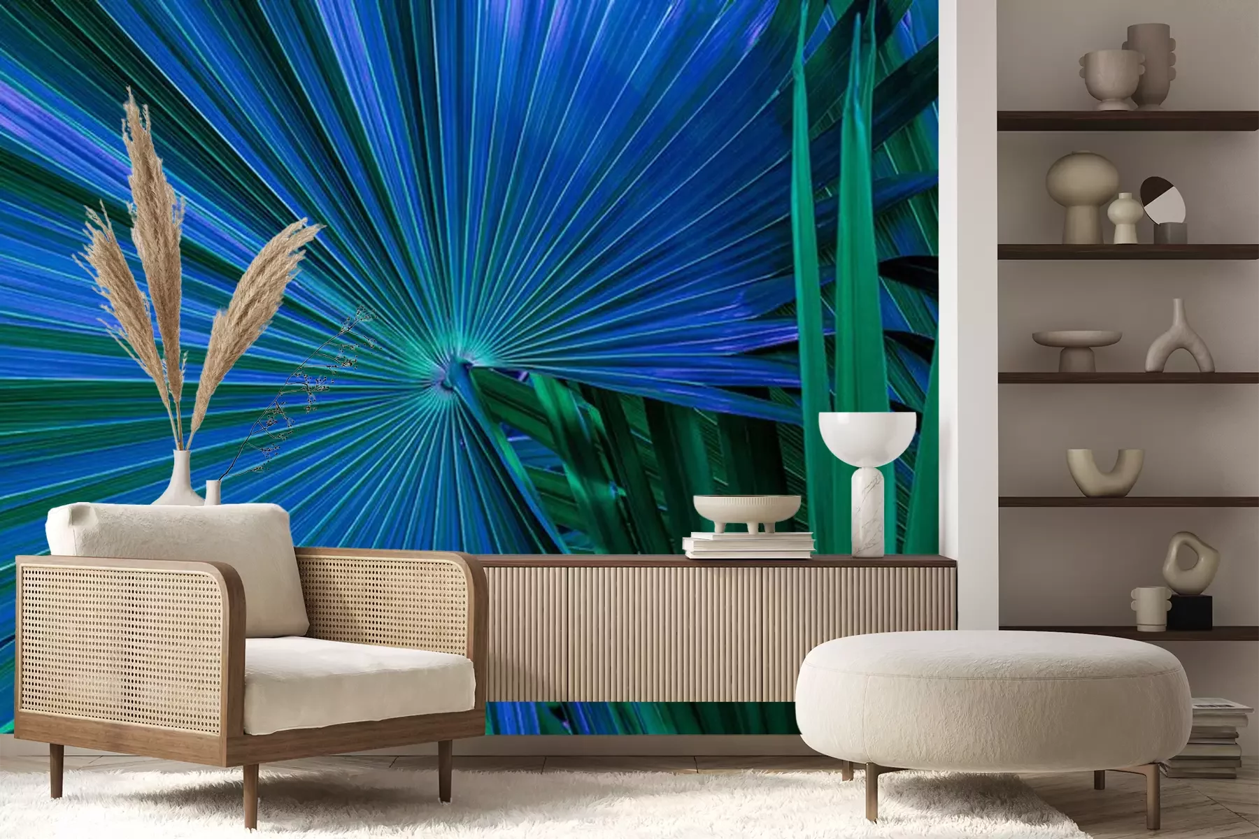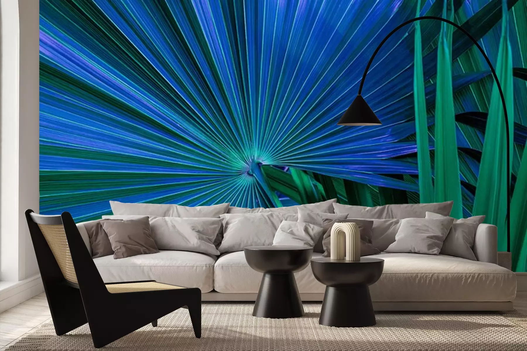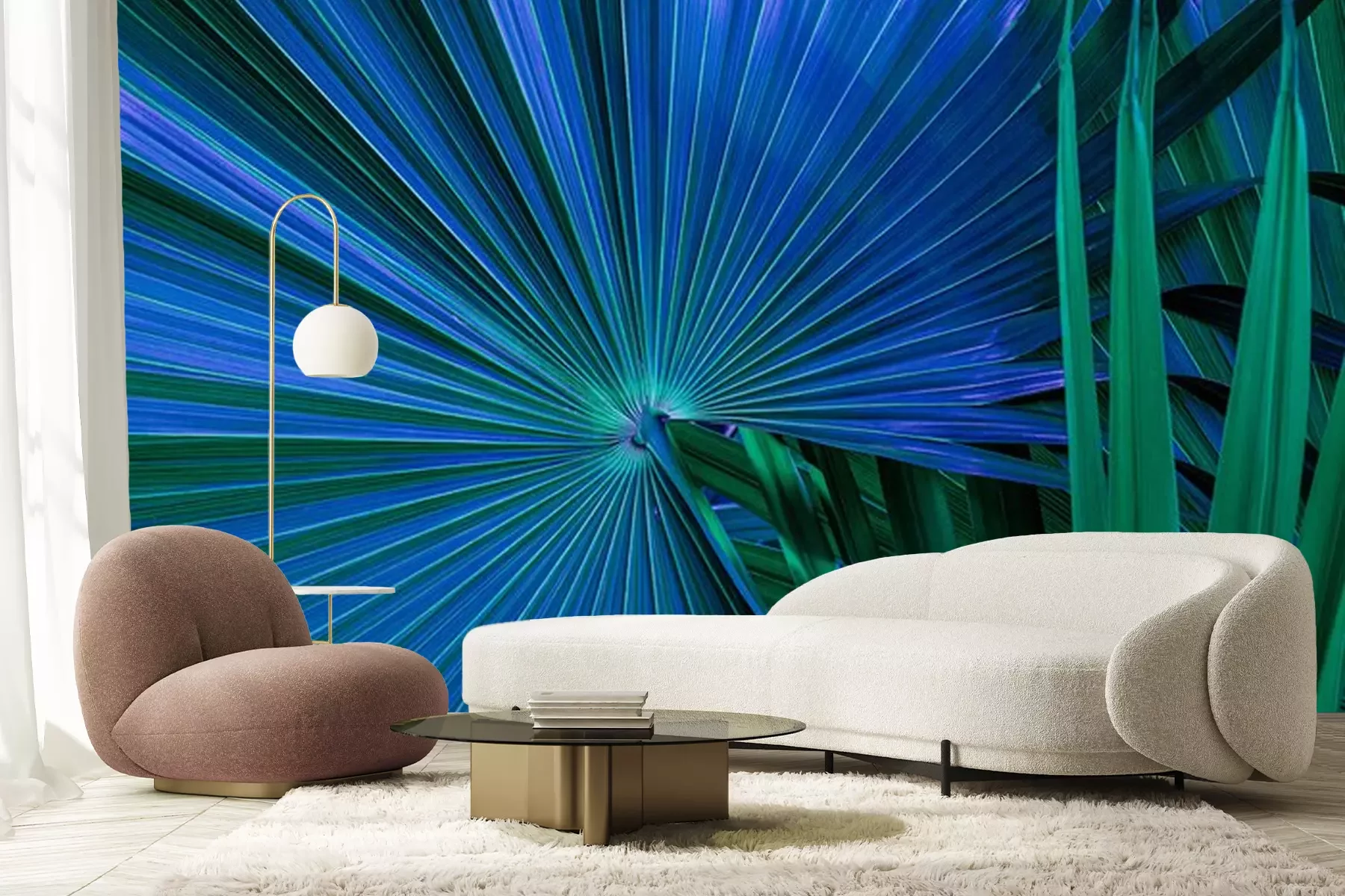 Papier peint  Feuilles de palmier vertes et bleues