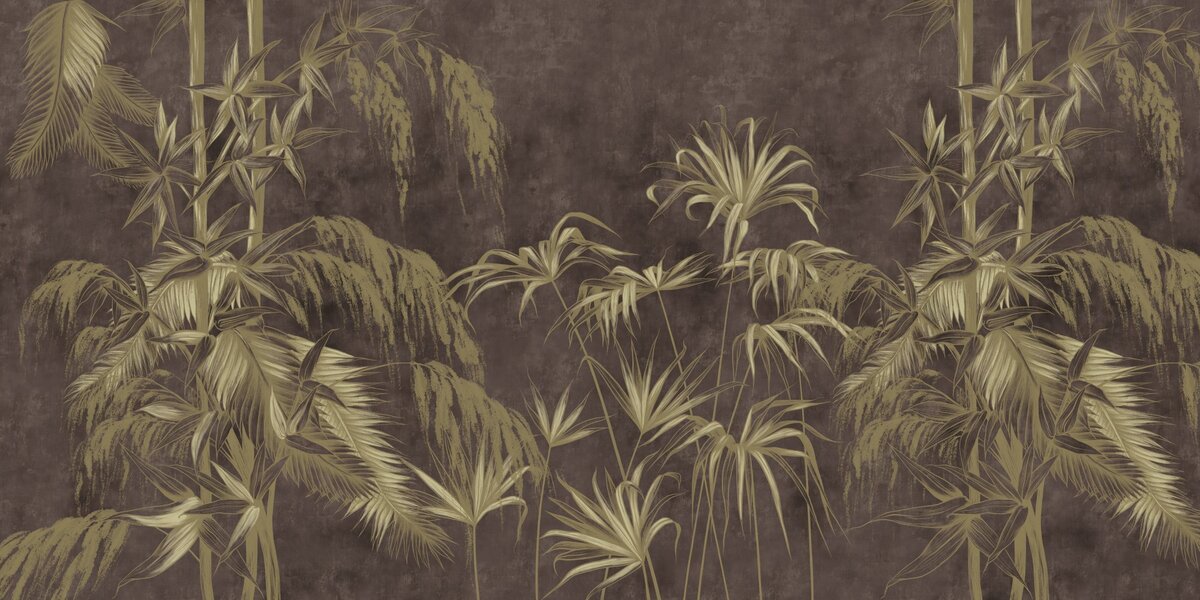 Papier peint : Feuilles et branches de bambou vert sur un fond texturé