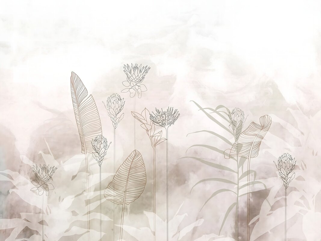 Papier peint : Feuilles et fleurs délicates sur fond aquarelle