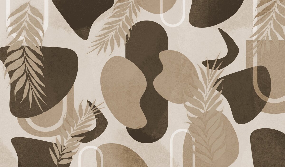 Papier peint : Feuilles et formes géométriques composition décorative beige et marron