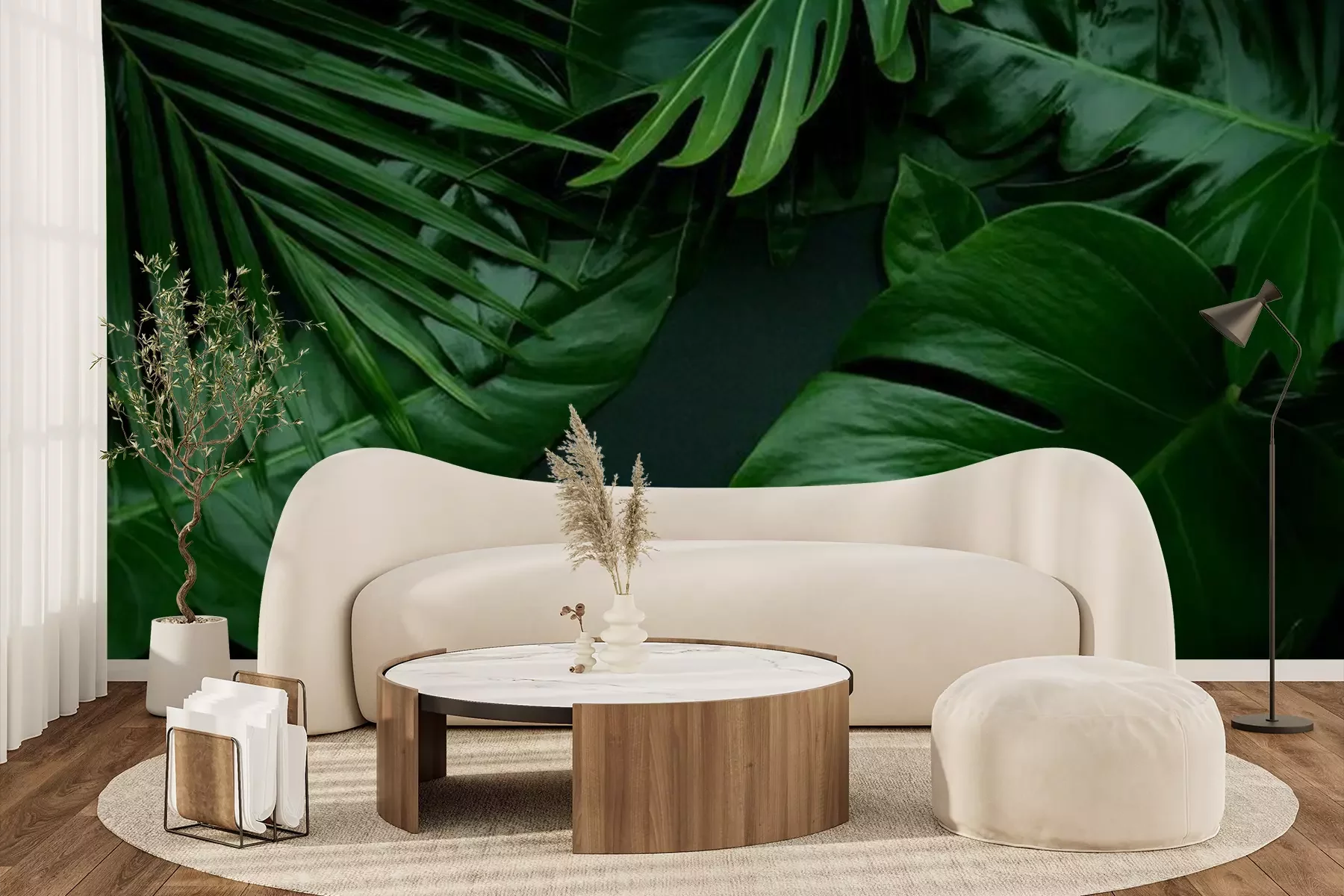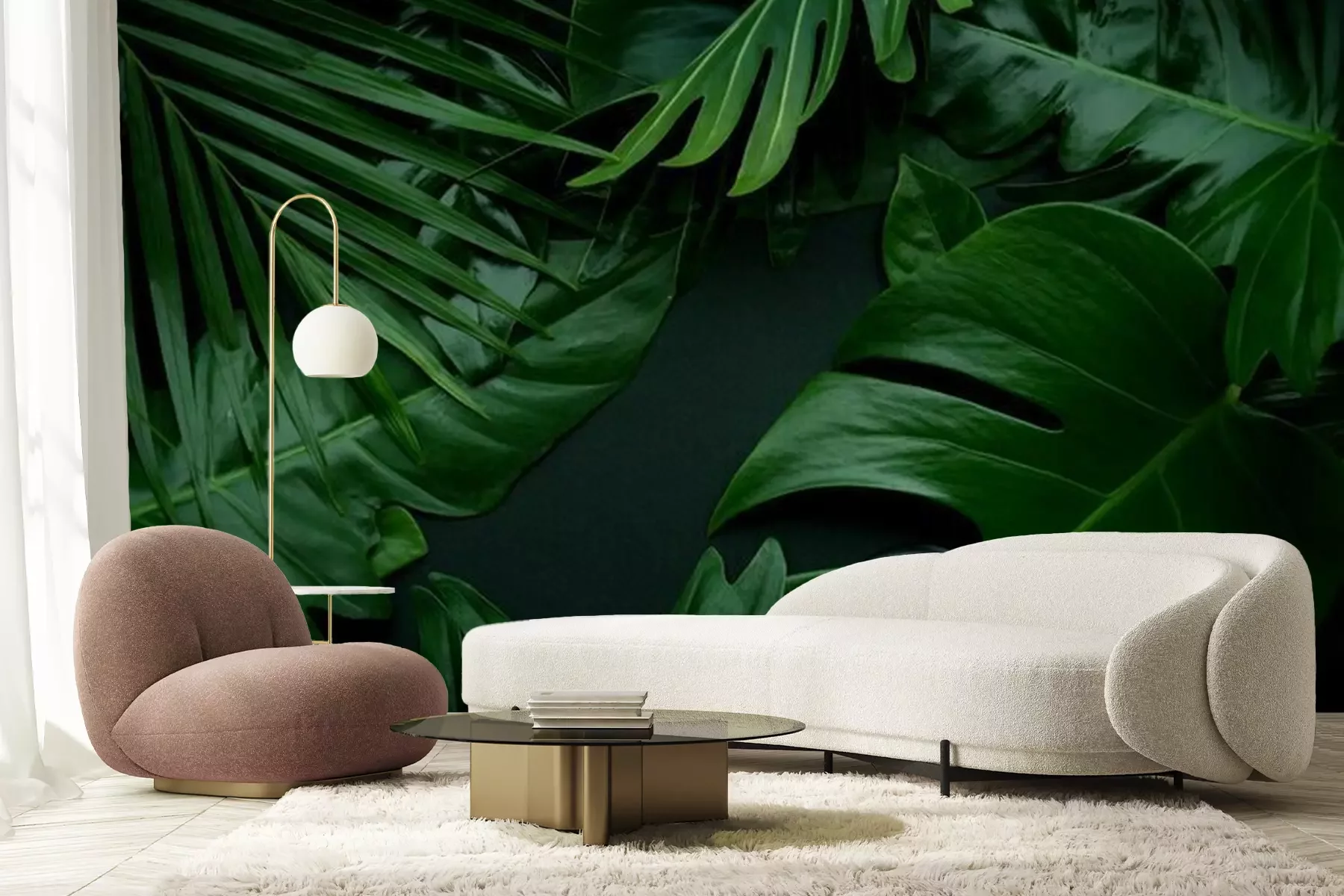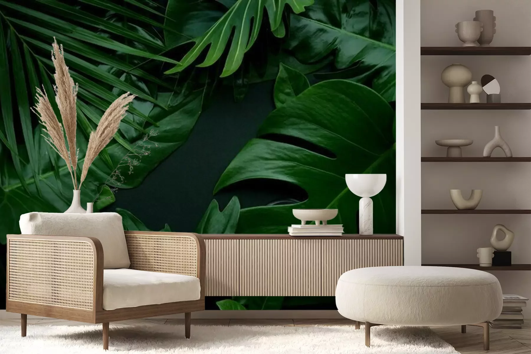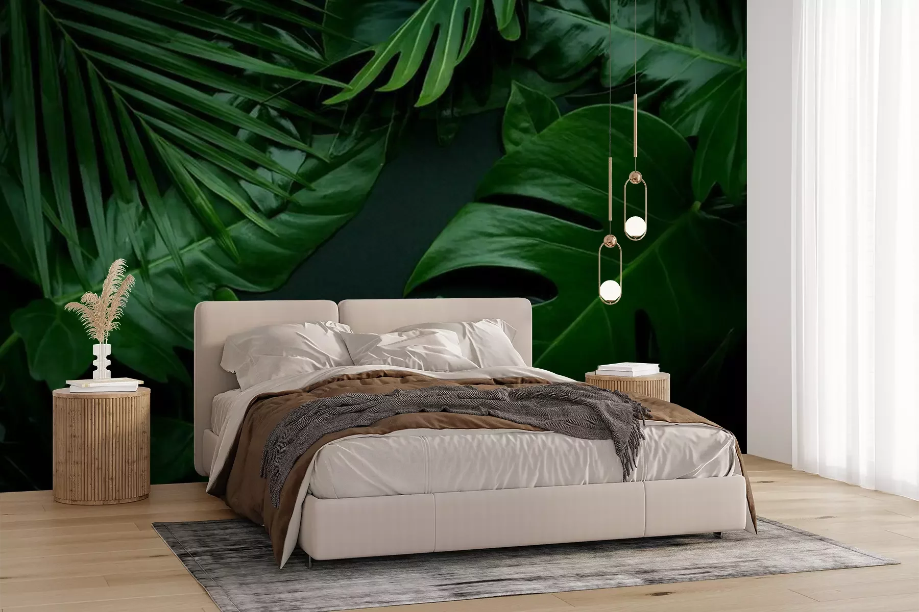 Papier peint  Feuilles exotiques sur fond sombre