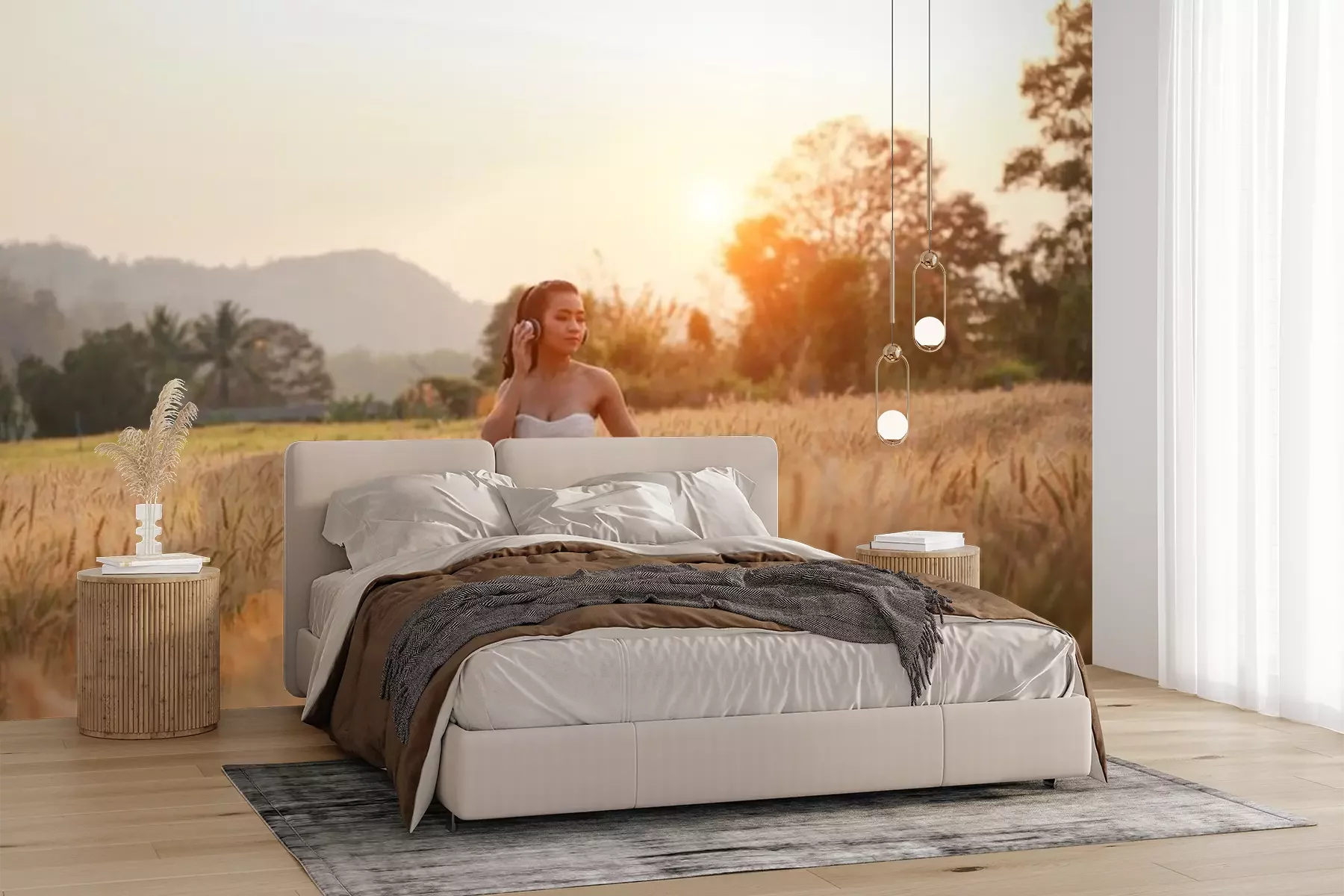 Papier peint  Feuilles pendantes aux couleurs de l'automne sur le béton