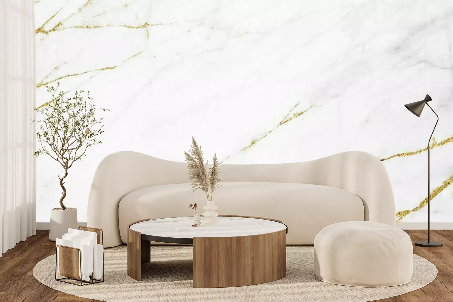 Marbre blanc avec des lignes doréesPapier peint