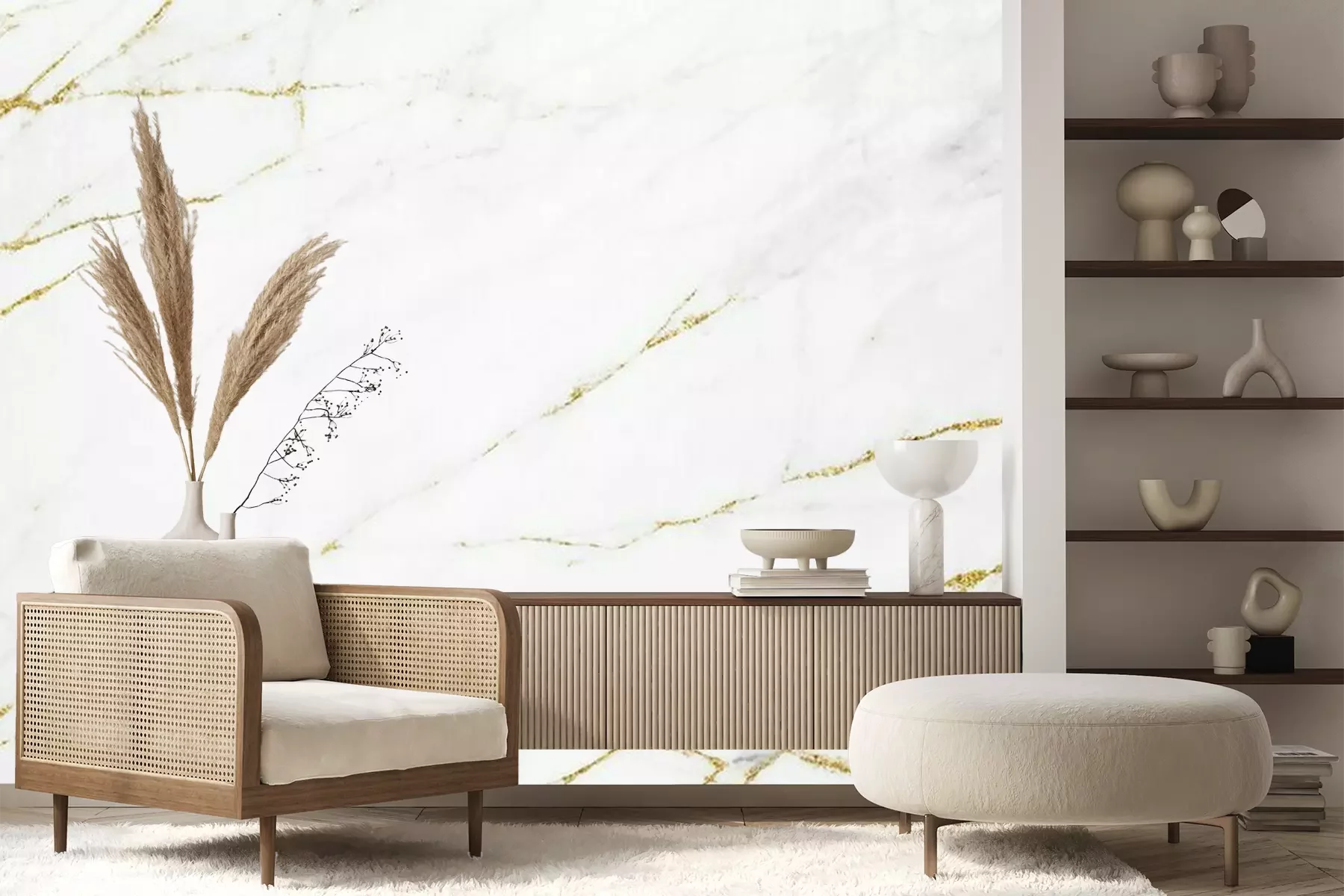 Mur blanc en marbrePapier peint