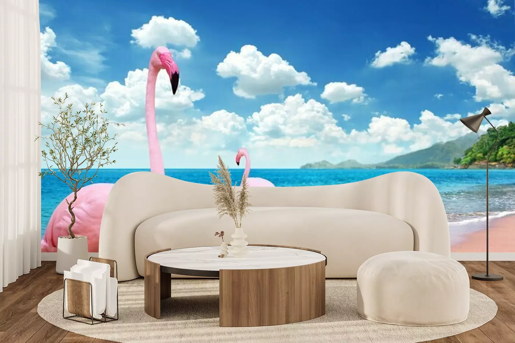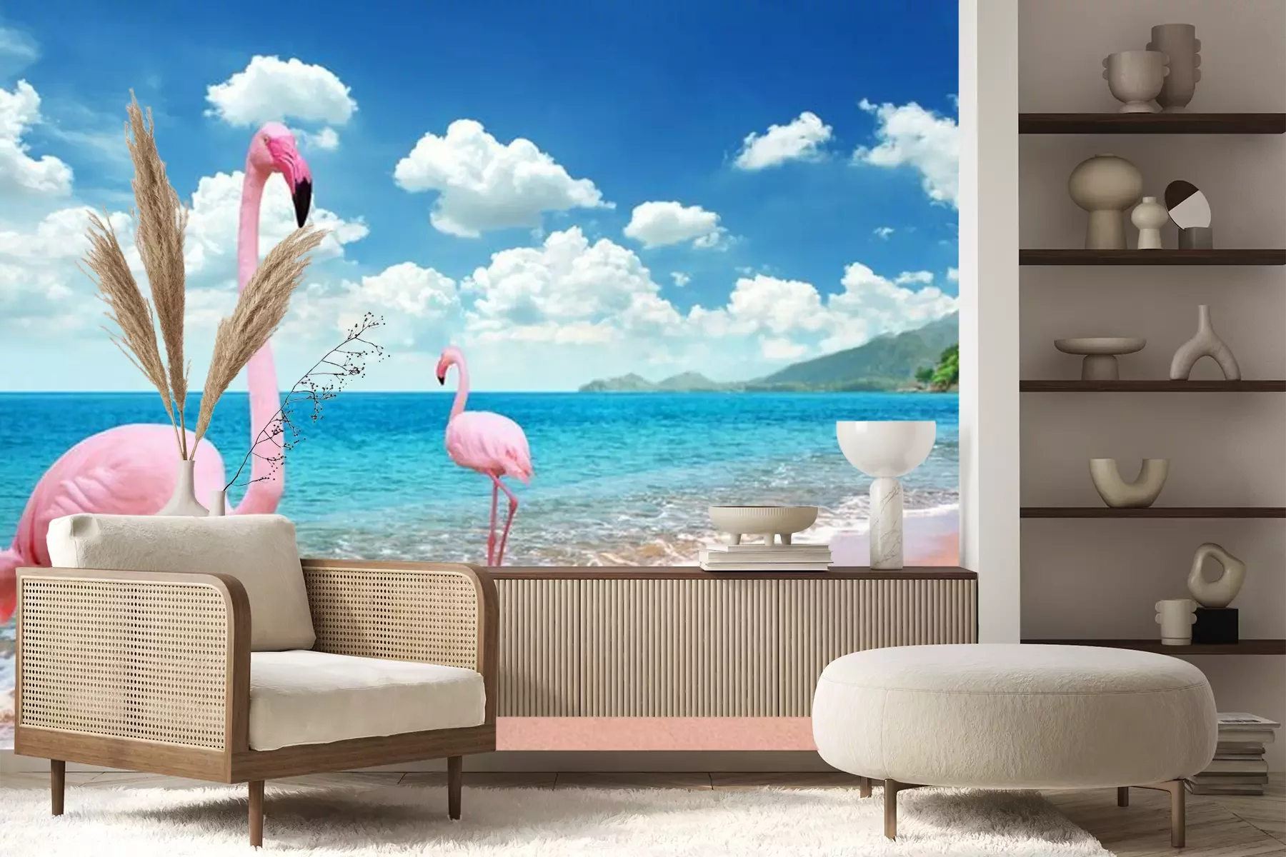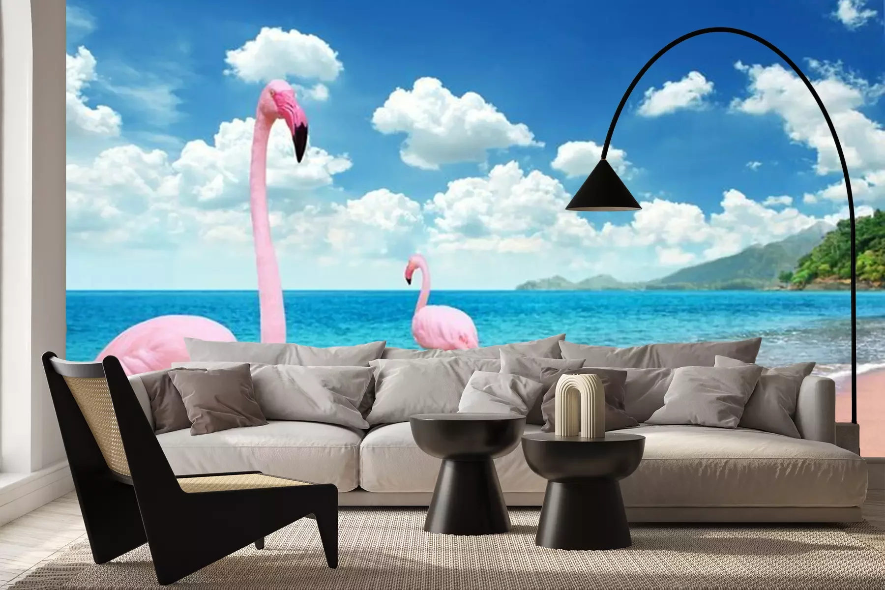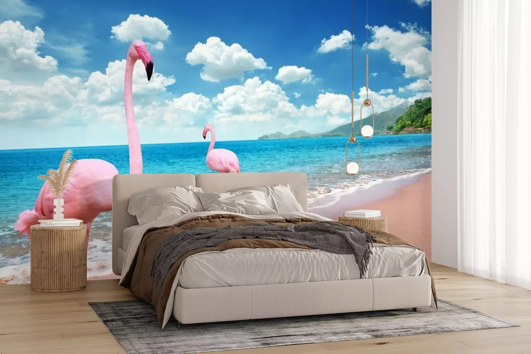 Flamant rose sur une plage roseLivraison sans problème assurée par des transporteurs de confiance