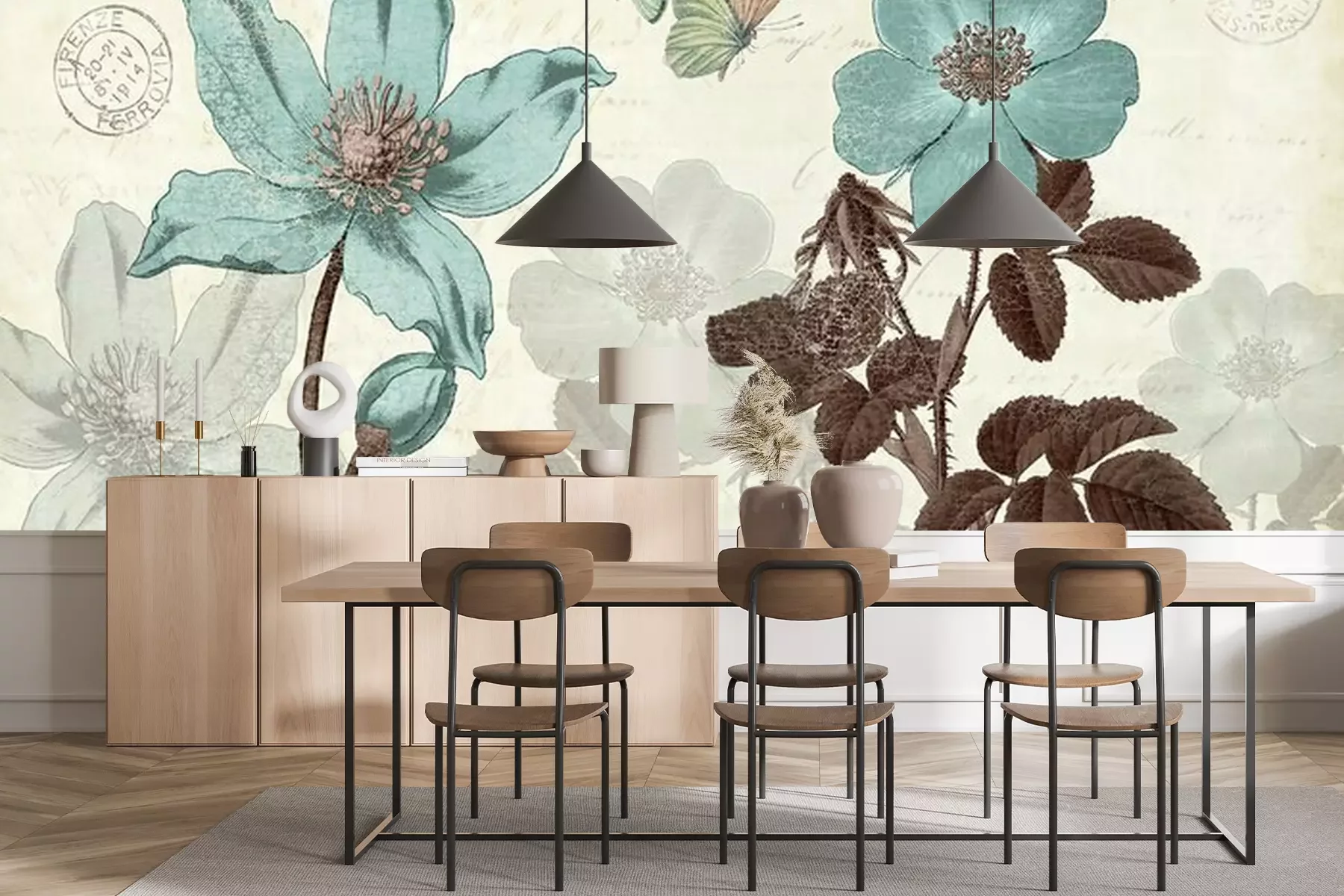Fleurs blanches vintage avec un fond d'inscriptionsLivraison sans problème assurée par des transporteurs de confiance
