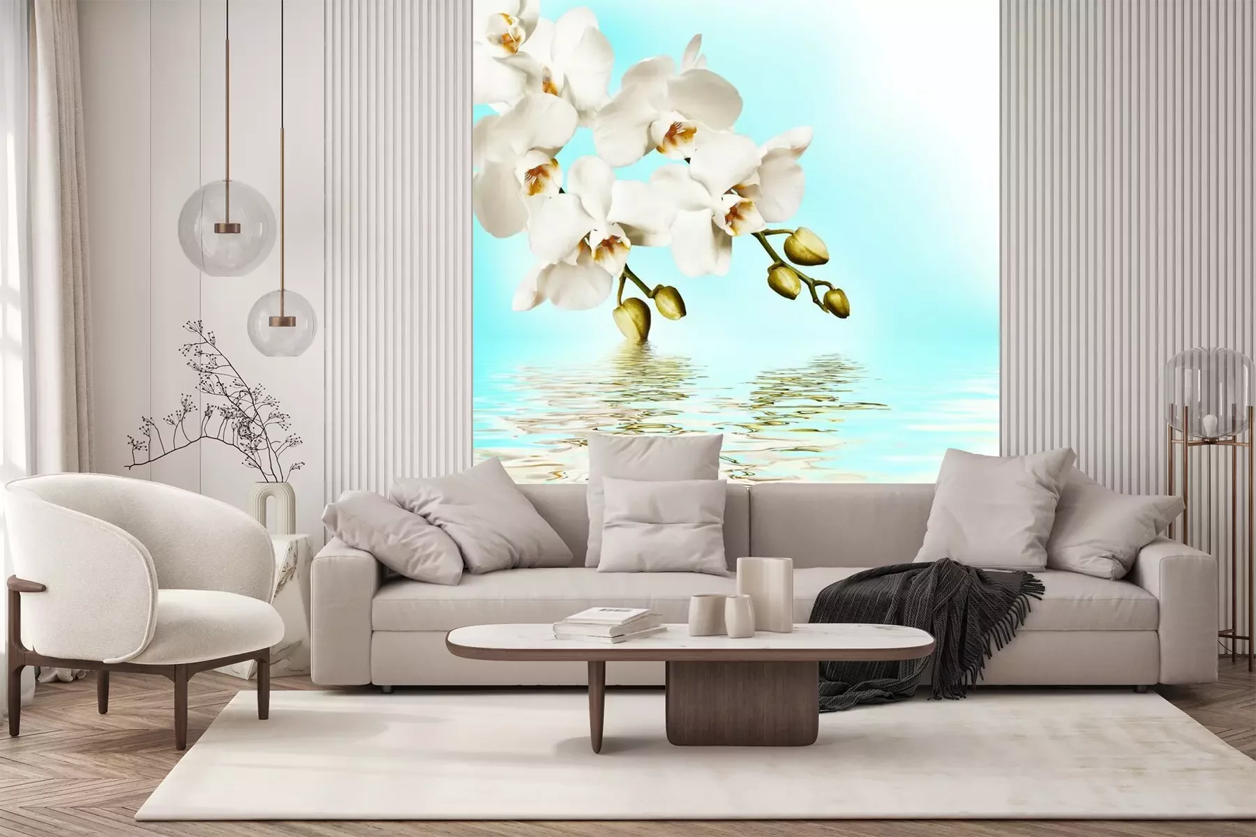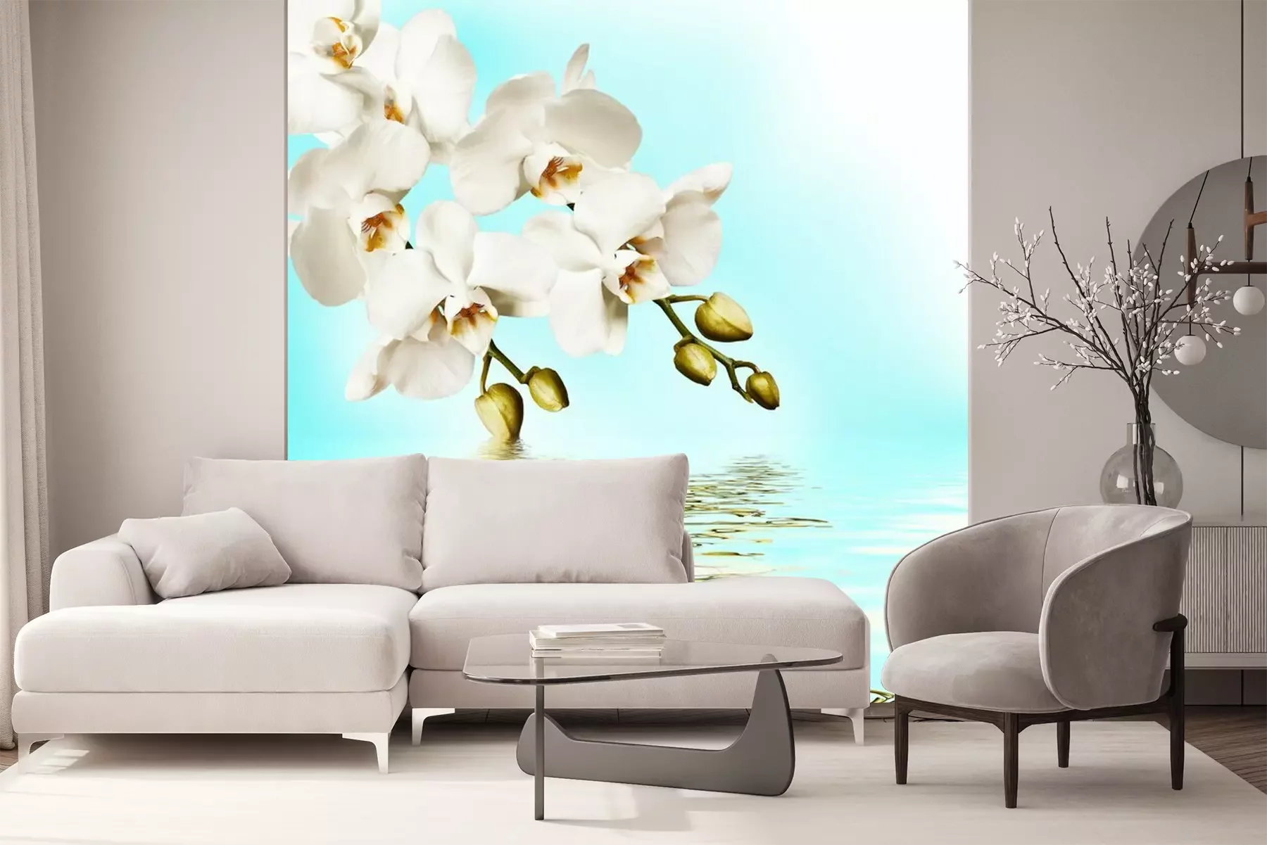 Branches suspendues d'une orchidée jaunePapier peint