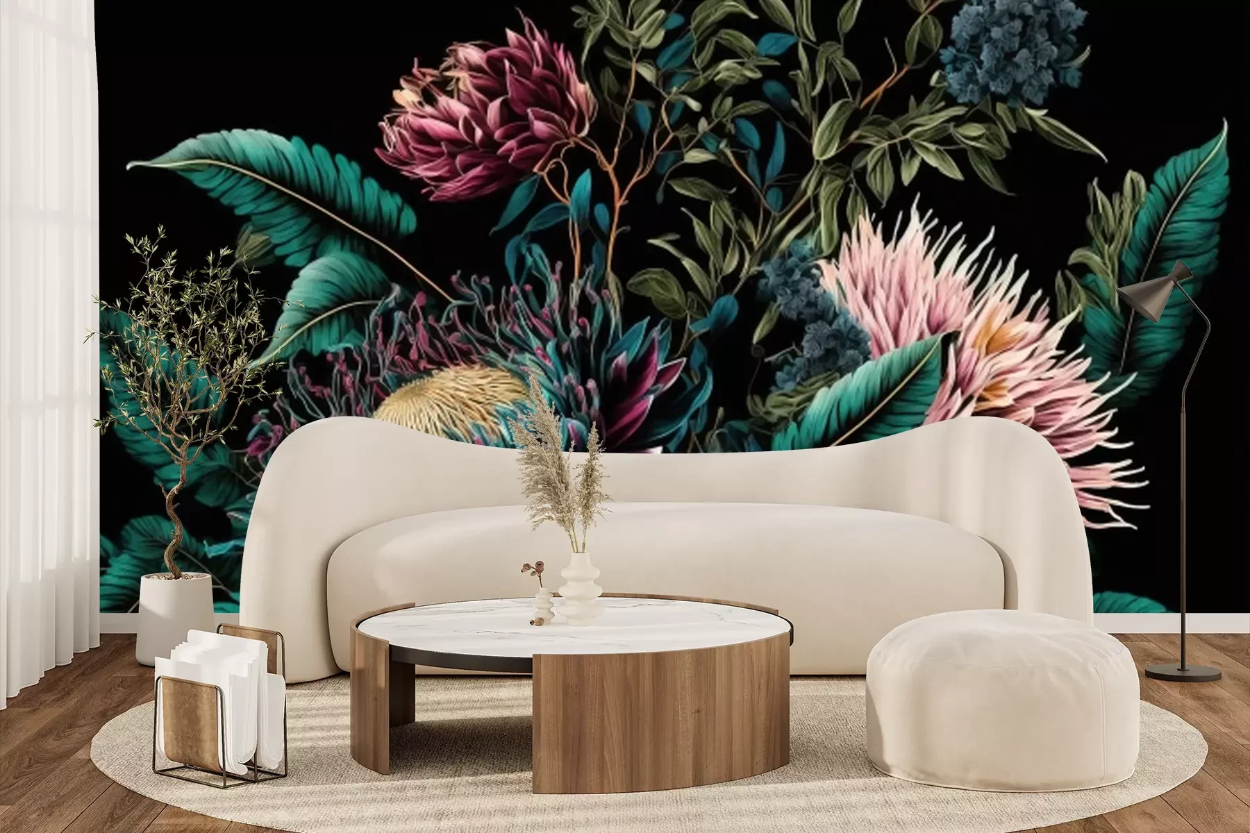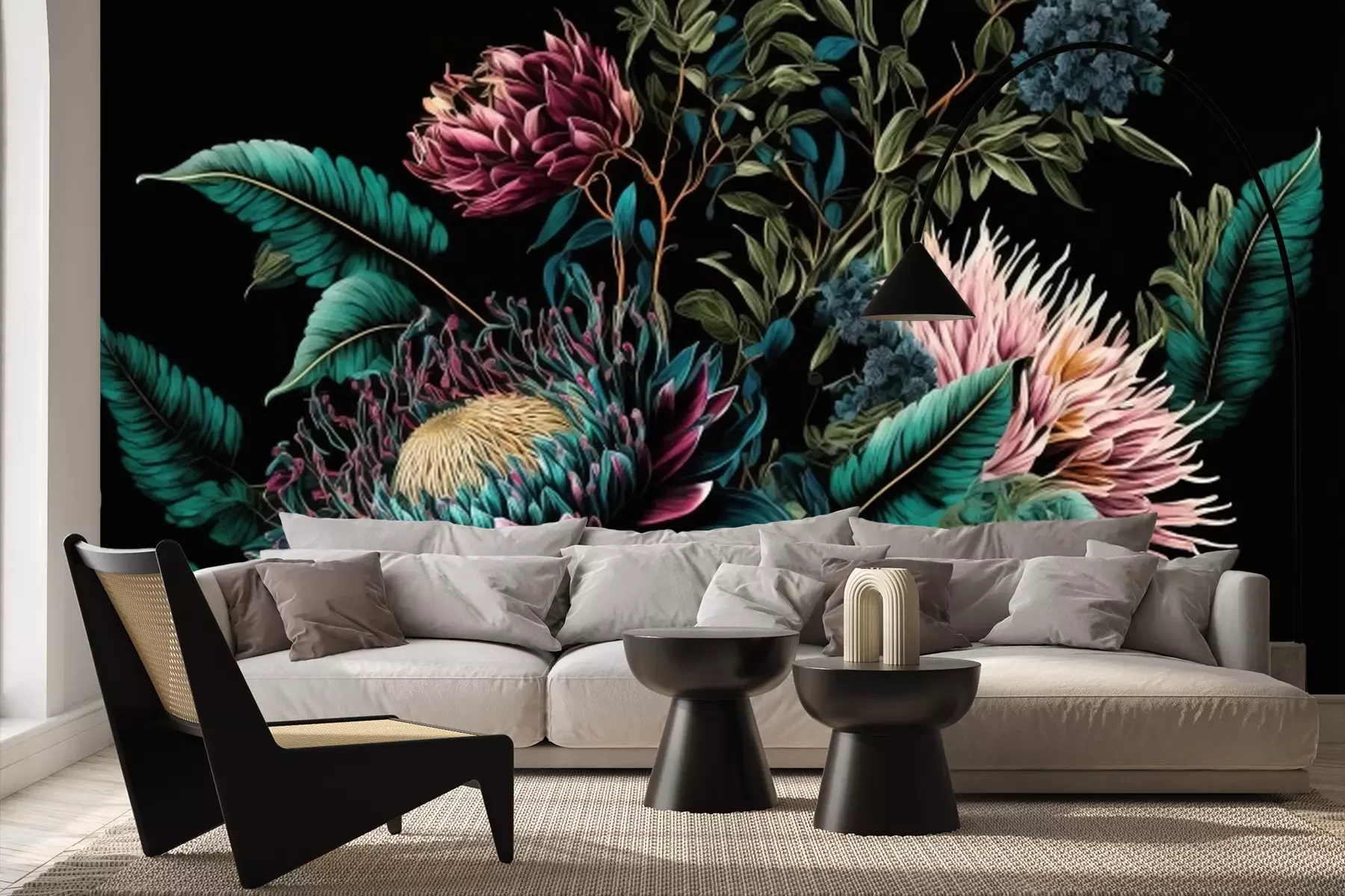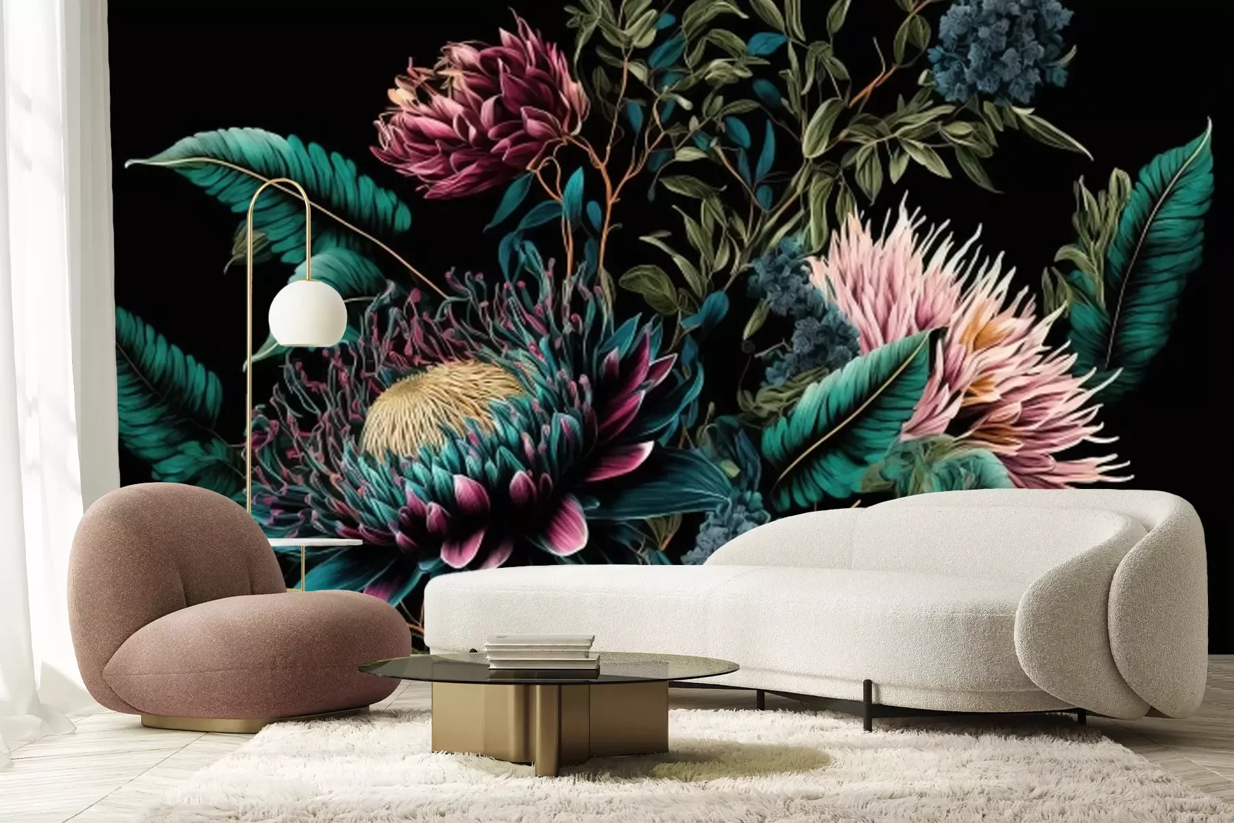 Papier peint  Fleurs dans une composition élégante sur fond sombre