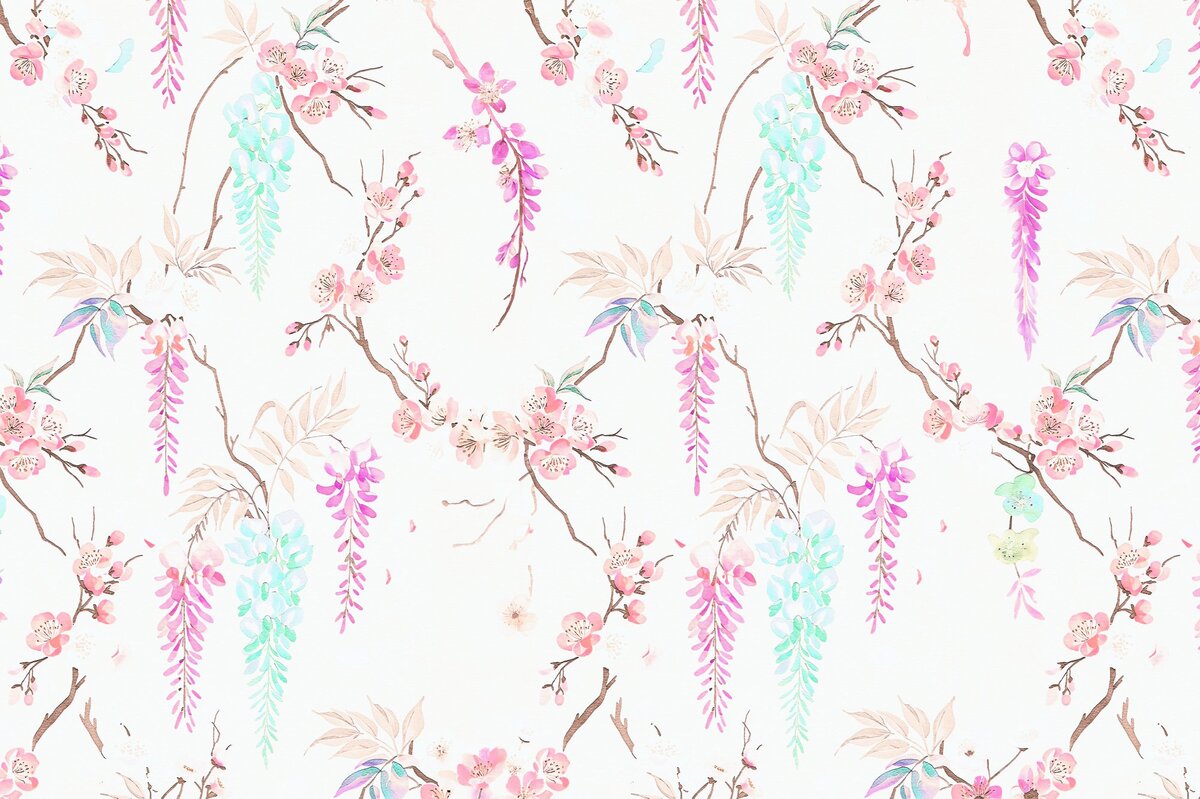 Papier peint : Fleurs de cerisier et feuilles sur un fond délicat