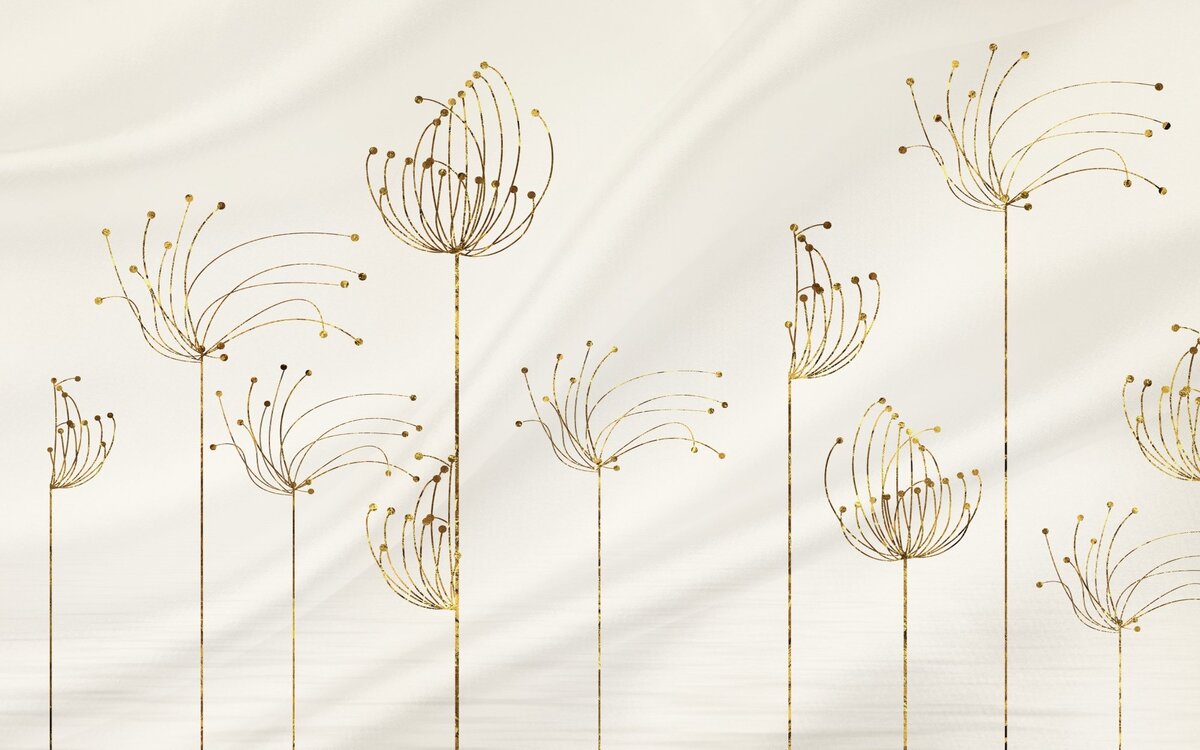 Papier peint : Fleurs de pissenlit abstraites en nuances dorées sur fond beige