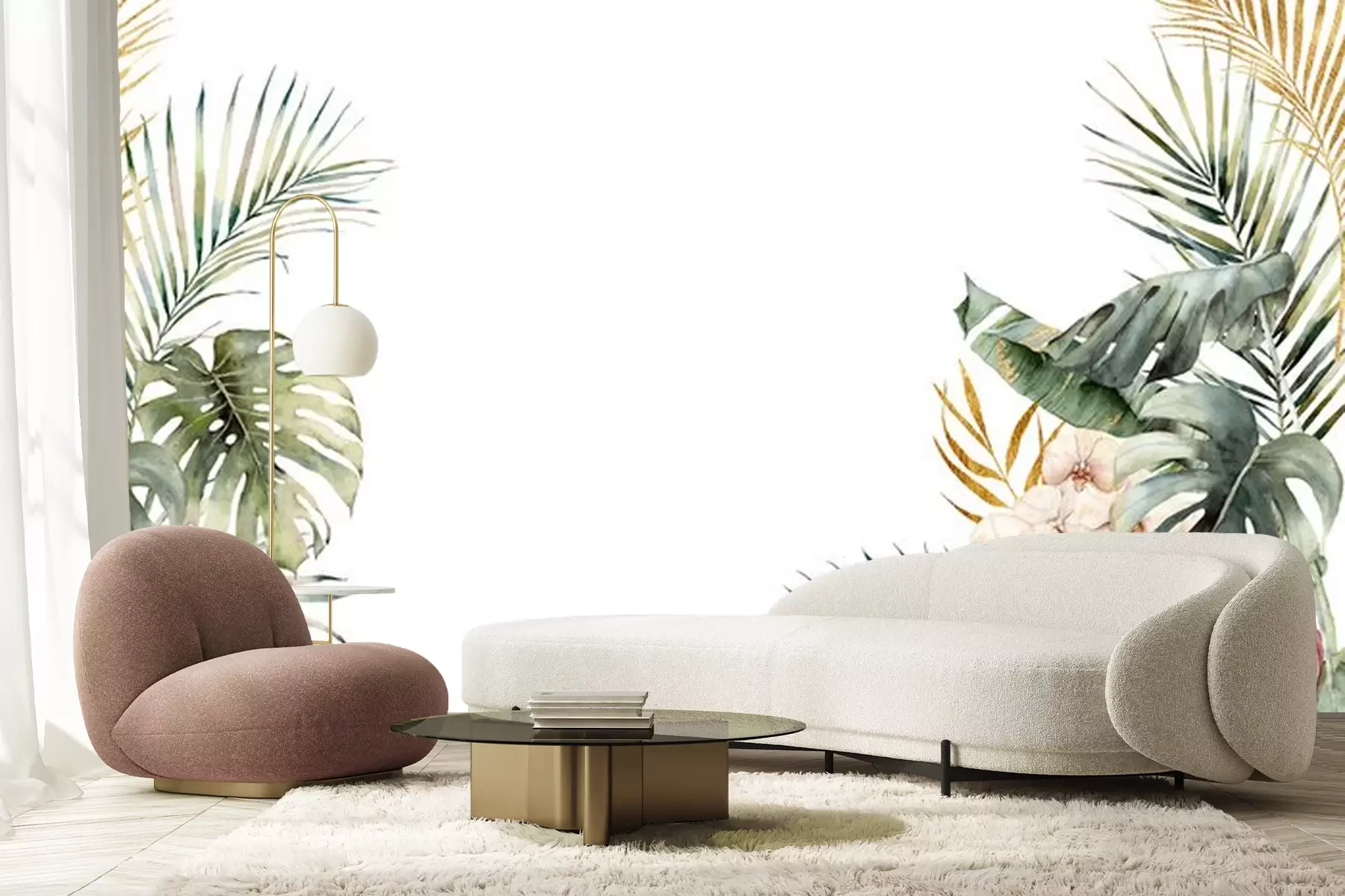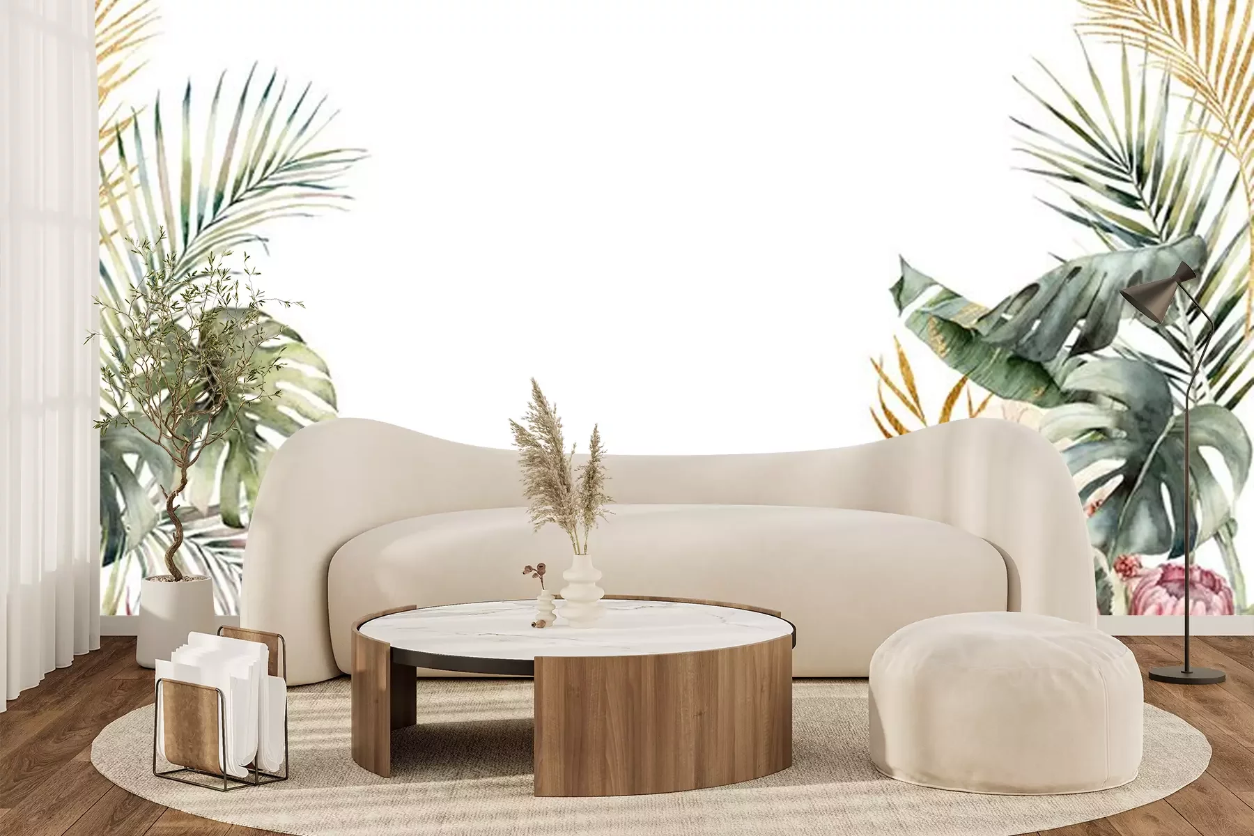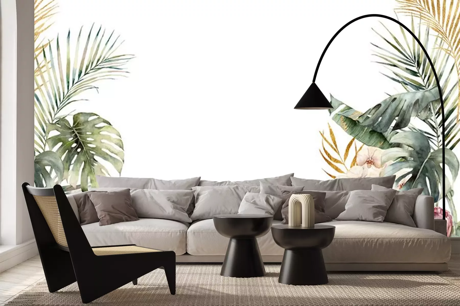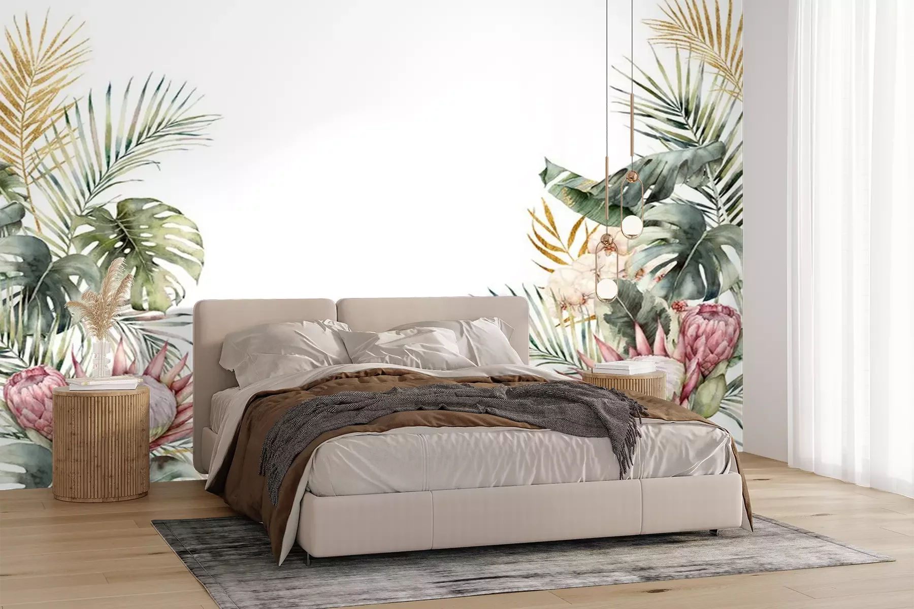 Papier peint  Fleurs éclatantes et feuilles de palmier