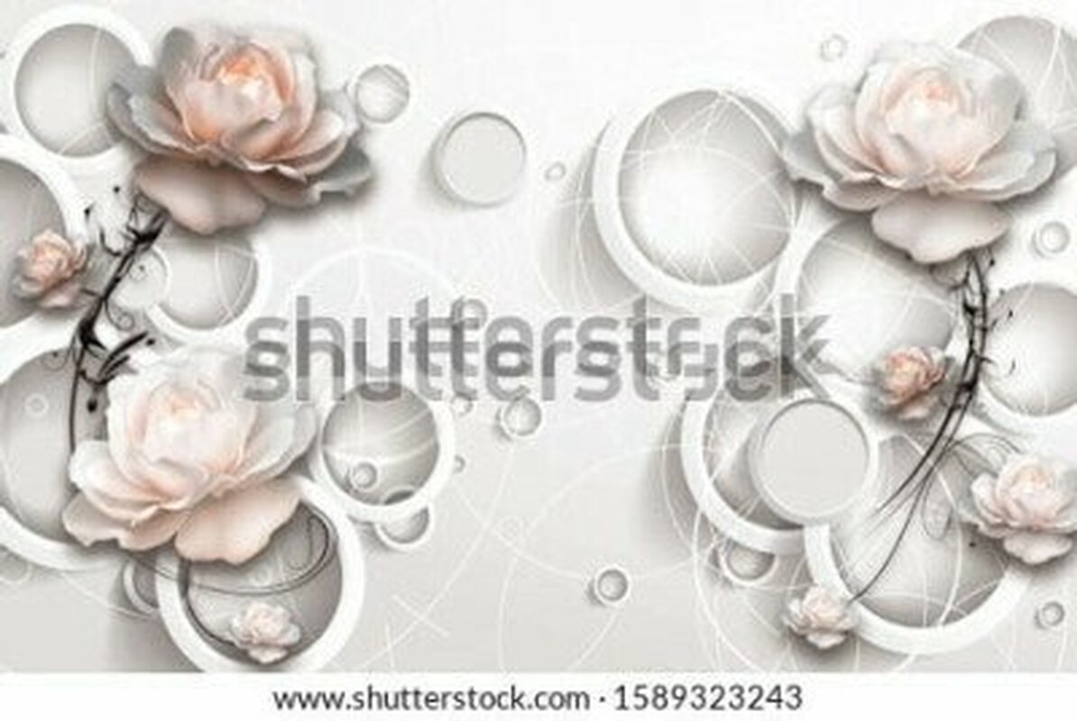 Papier peint : Fleurs et anneaux abstraits en 3D