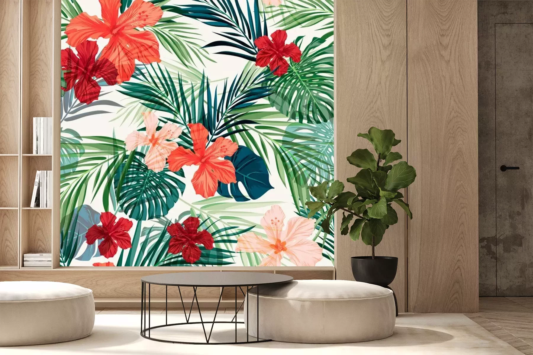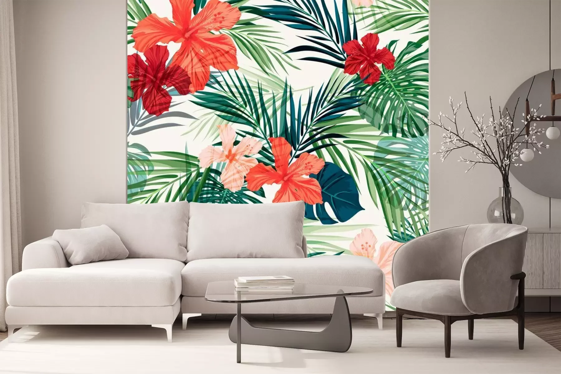 Fleurs tropicales et feuilles bleuesLivraison sans problème assurée par des transporteurs de confiance