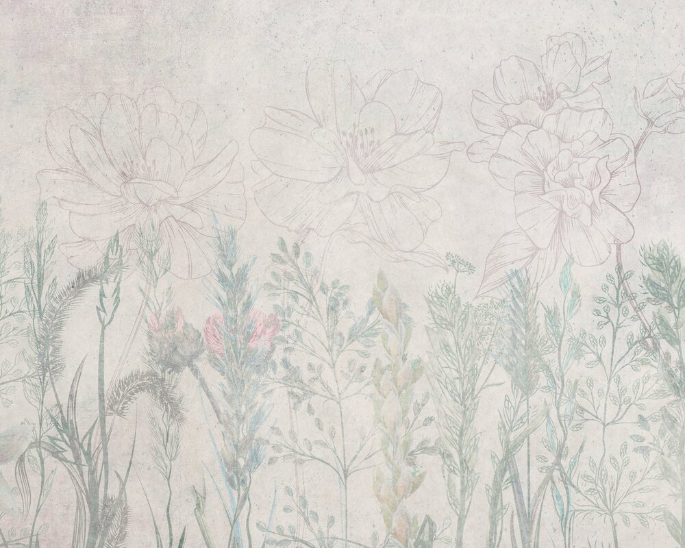 Papier peint : Fleurs et fleurs sauvages sur un fond gris texturé