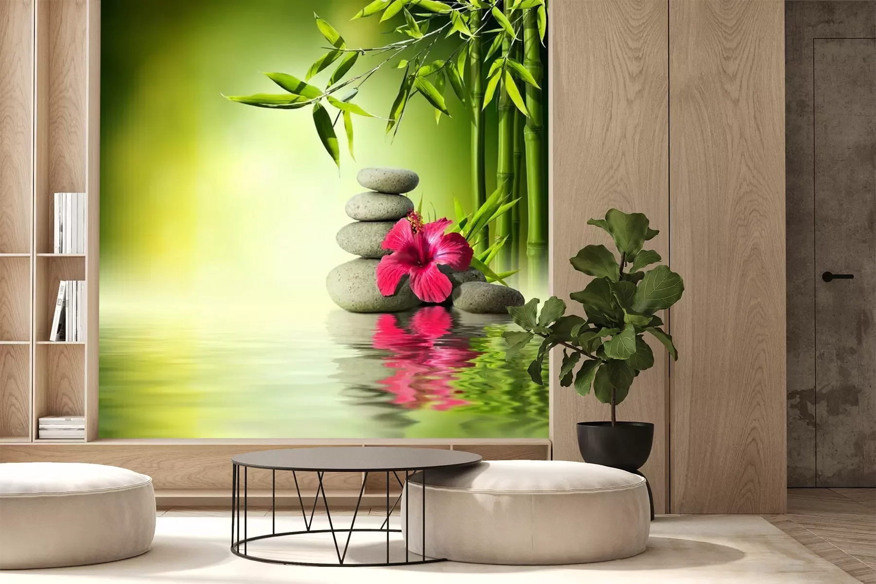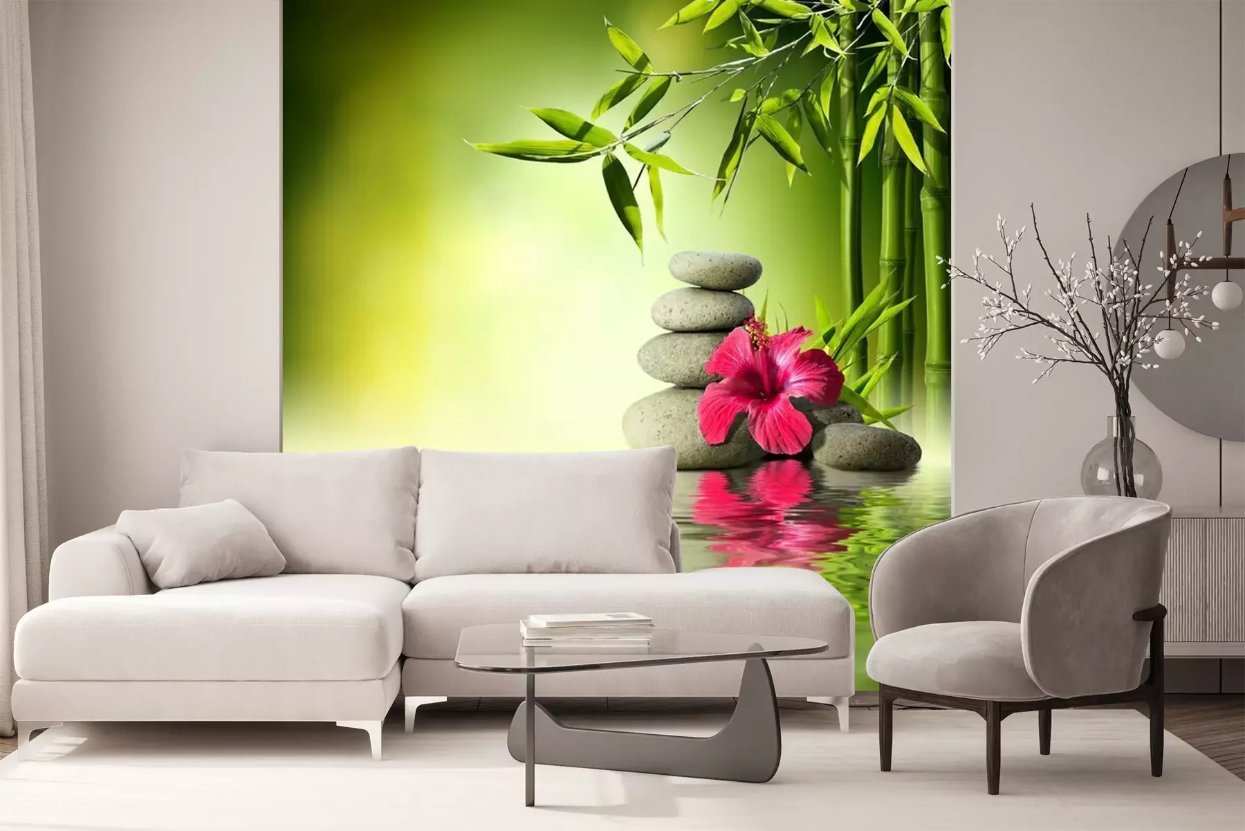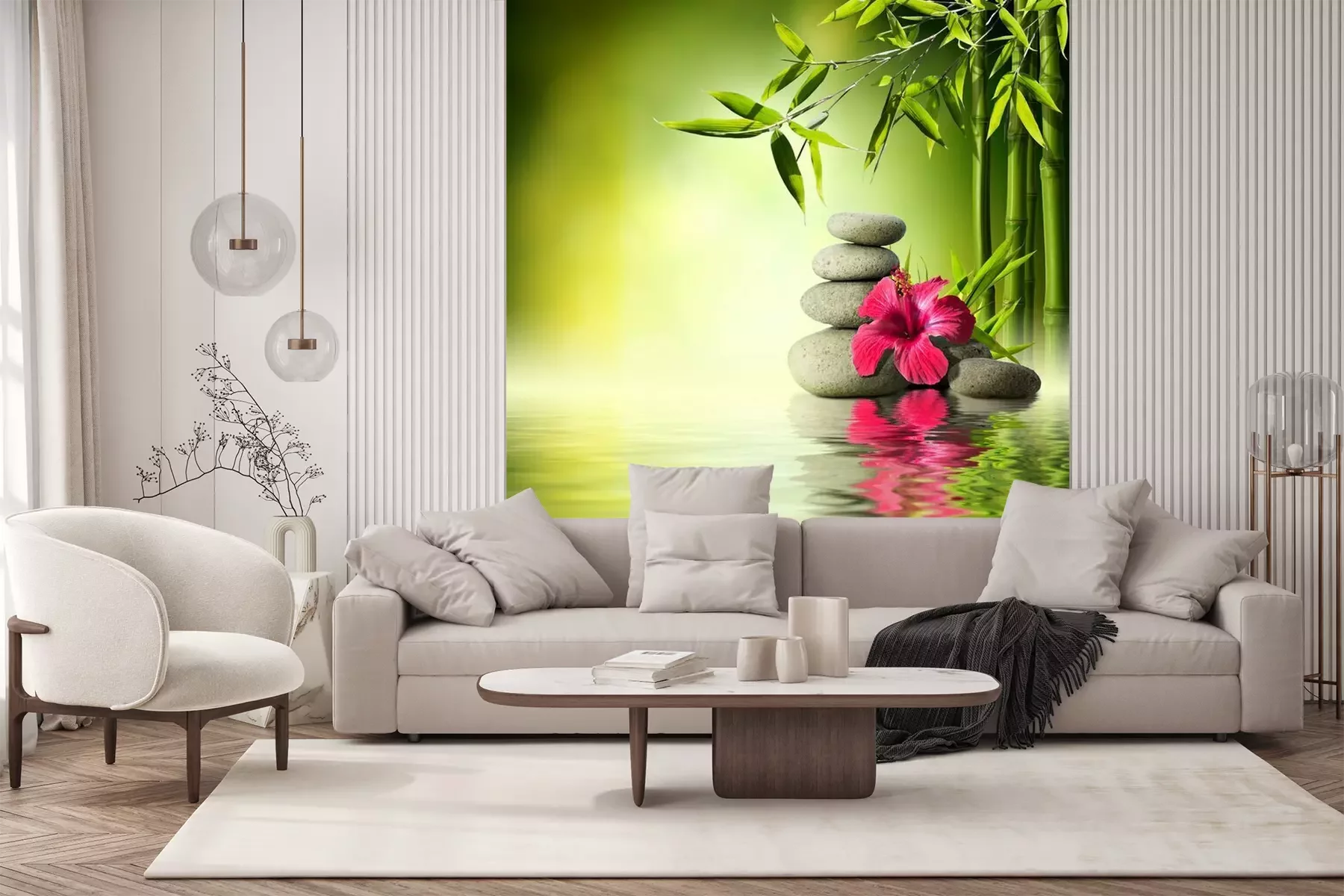 Composition orchidée, pierres, bambouPapier peint