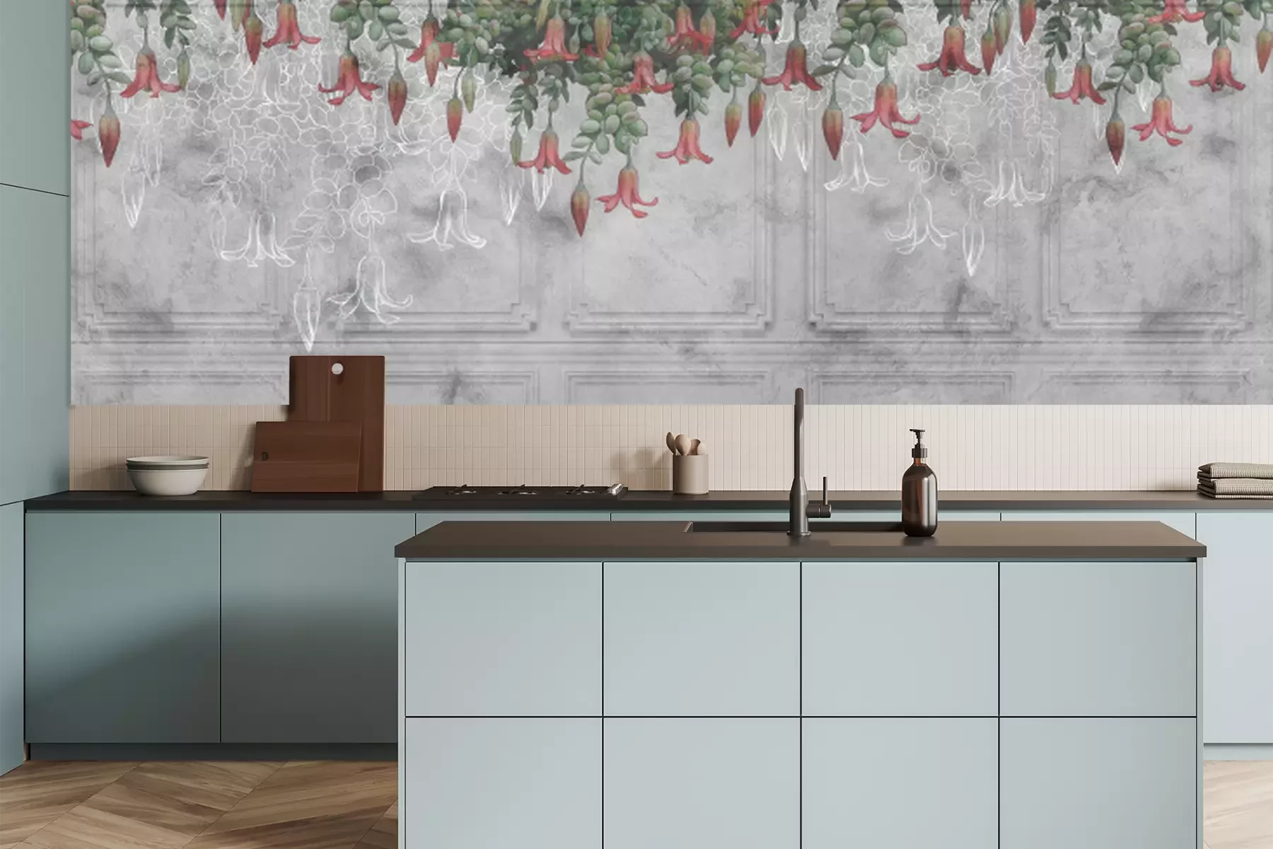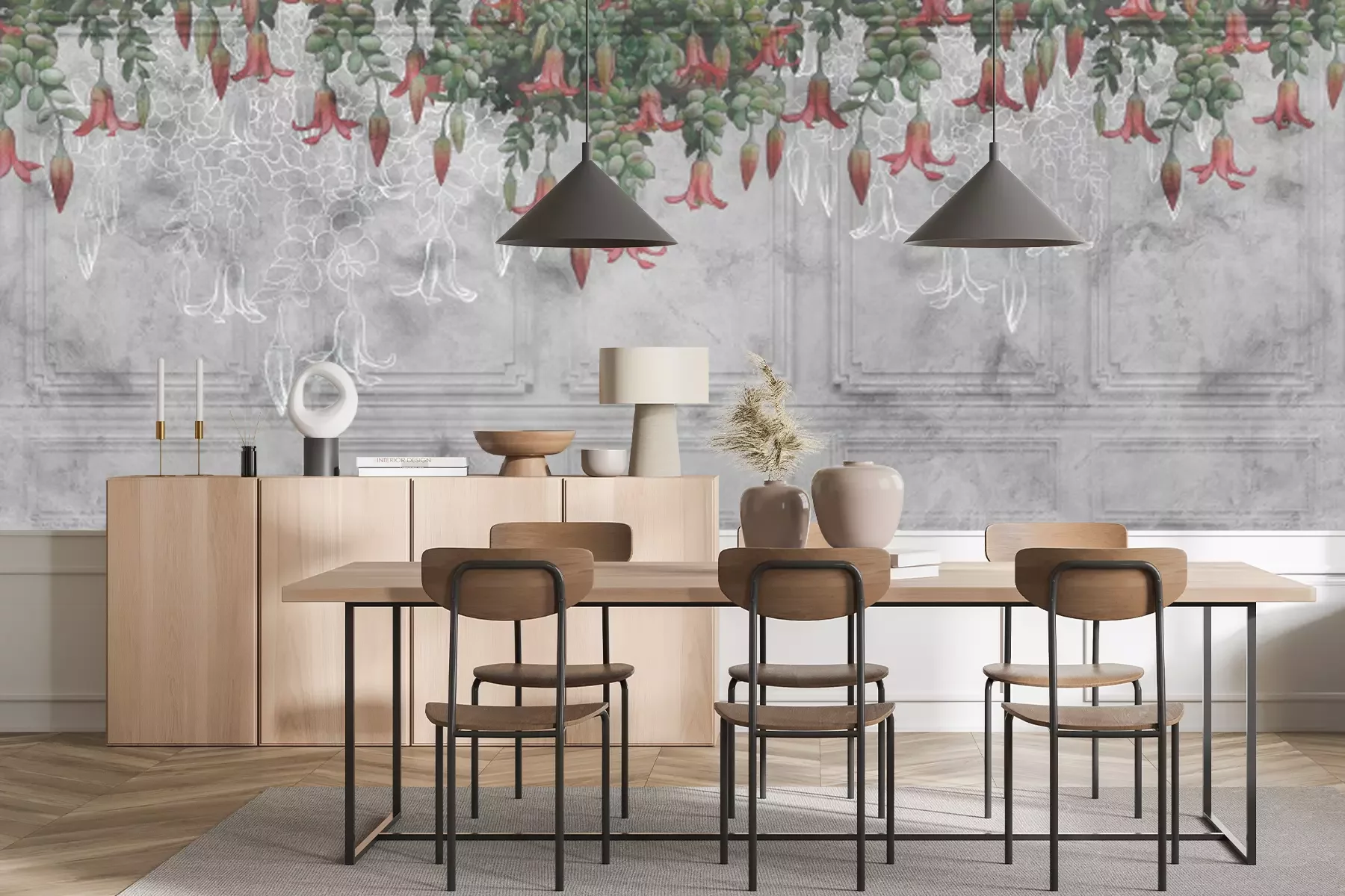 Papier peint  Fleurs exotiques sur un mur de béton gris