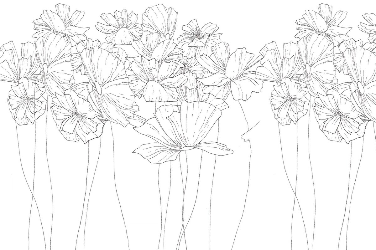 Papier peint : Fleurs sauvages esquissées sur fond blanc