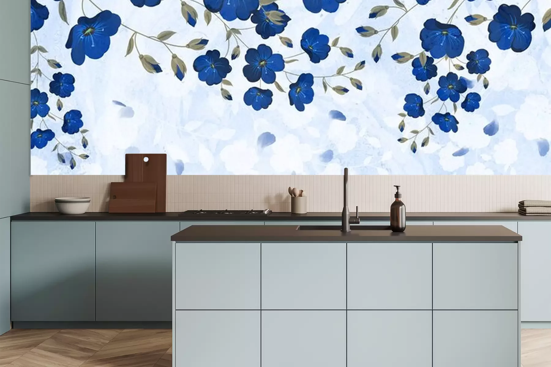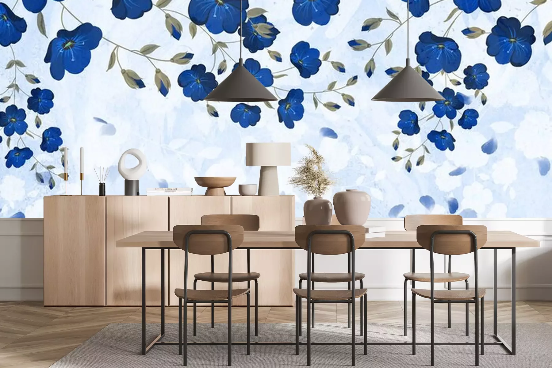 Papier peint  Fleurs suspendues au-dessus sur un fond bleu clair