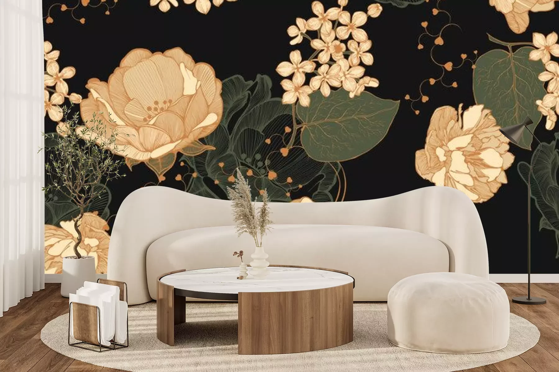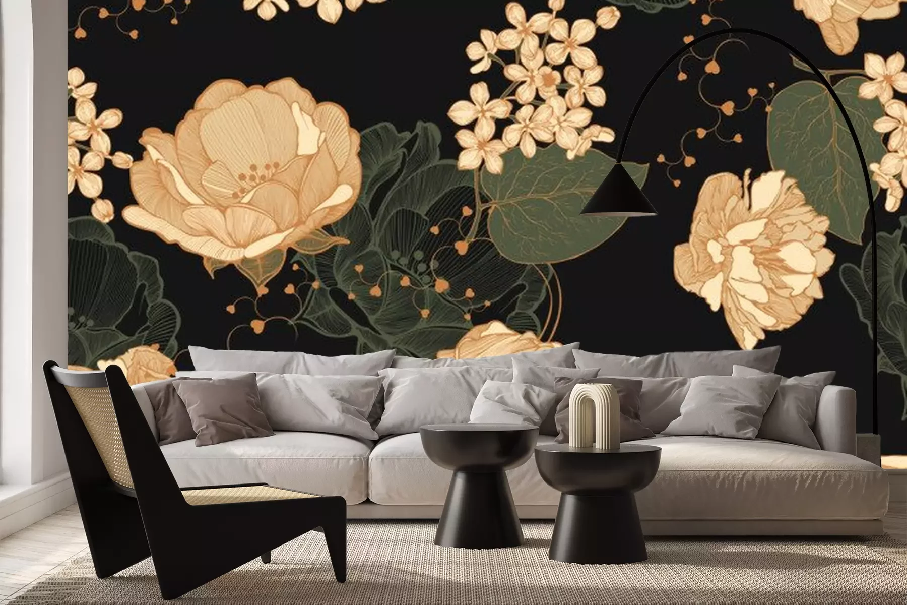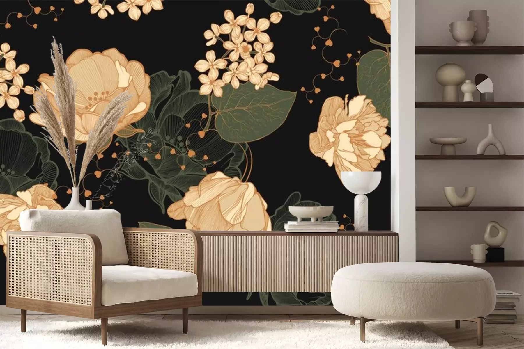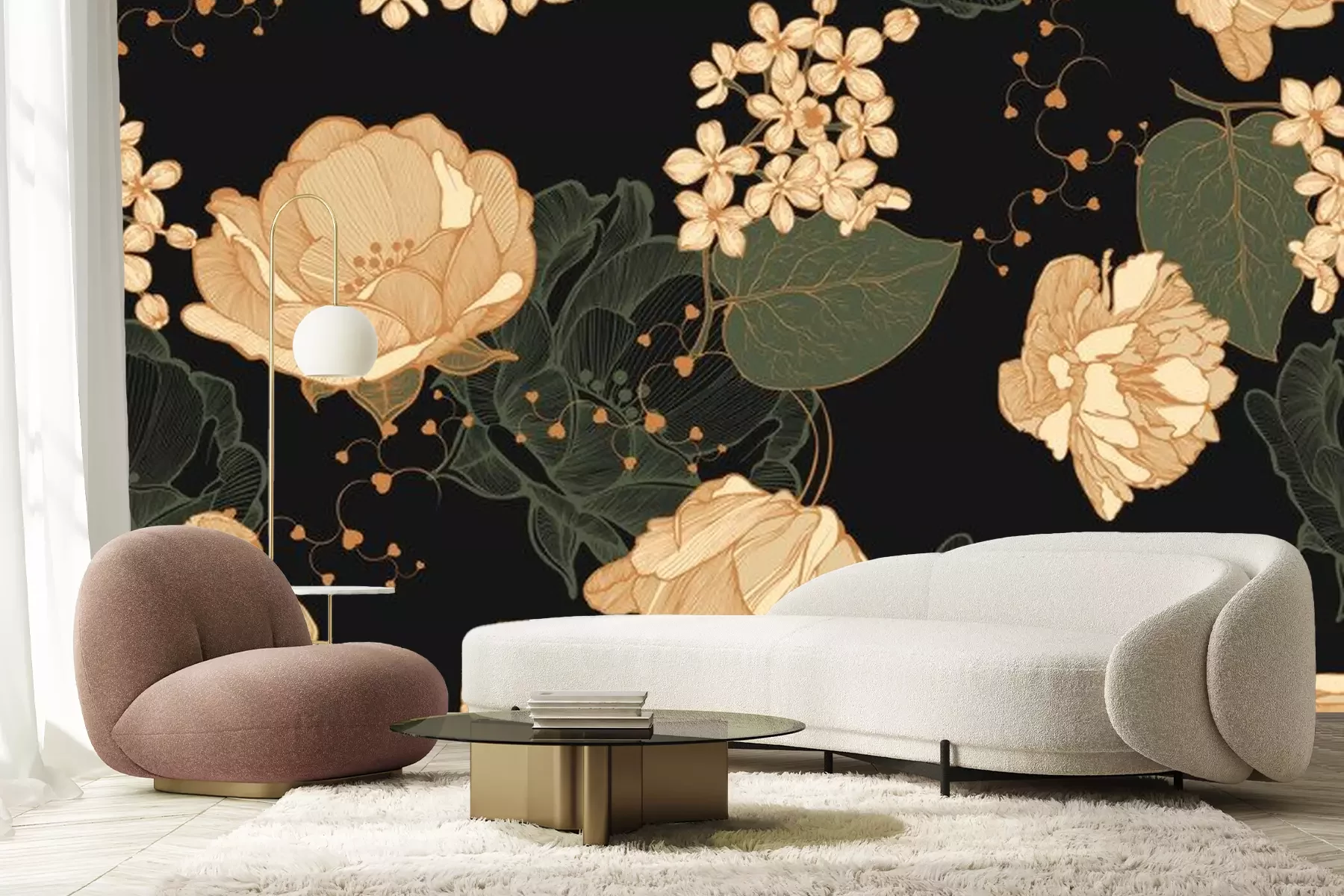 Papier peint  Floral vintage seamless pattern with roses, tulips and lilac. Hand drawing, vector illustration.
