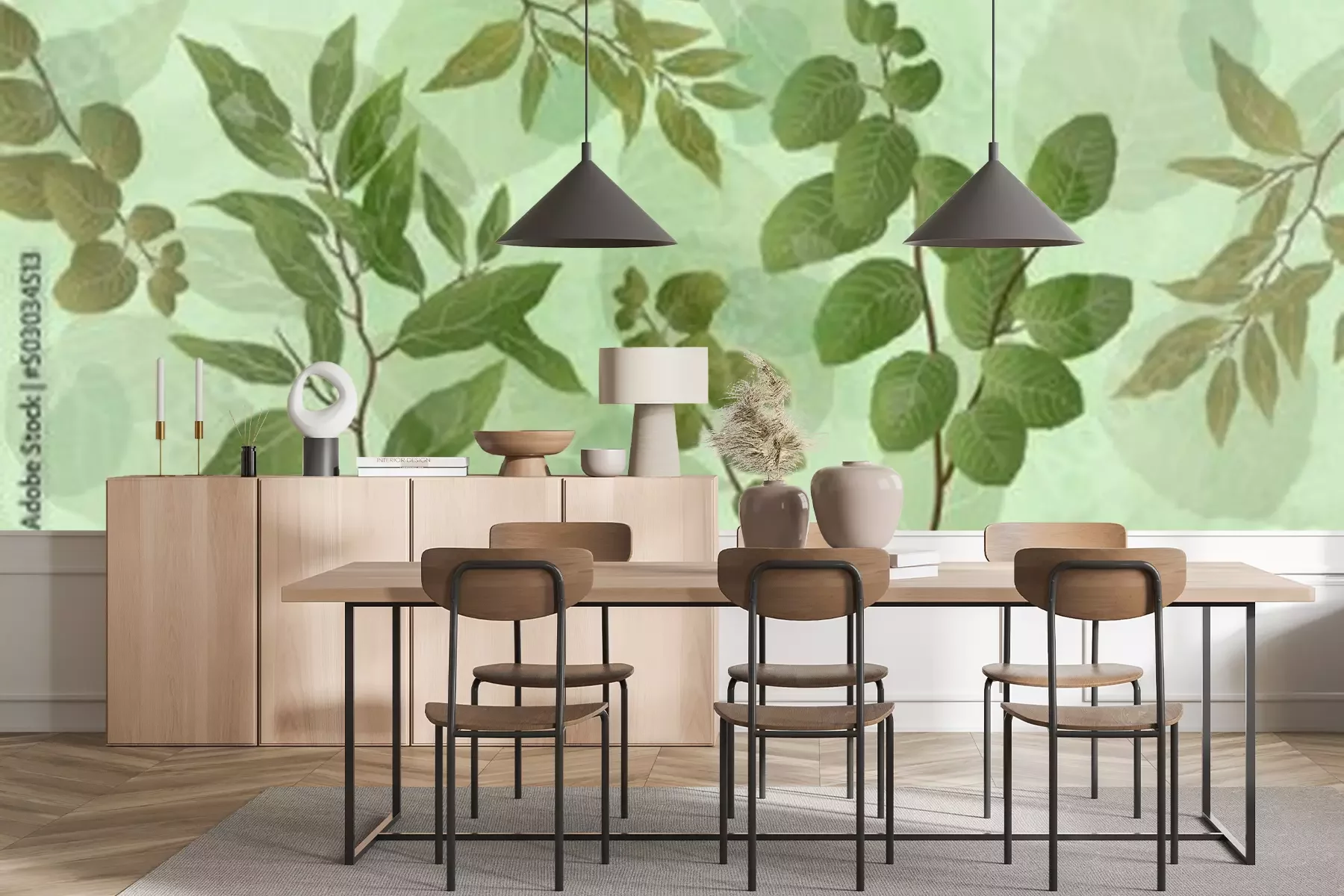 Papier peint  Fond botanique avec des feuilles de plantes exotiques