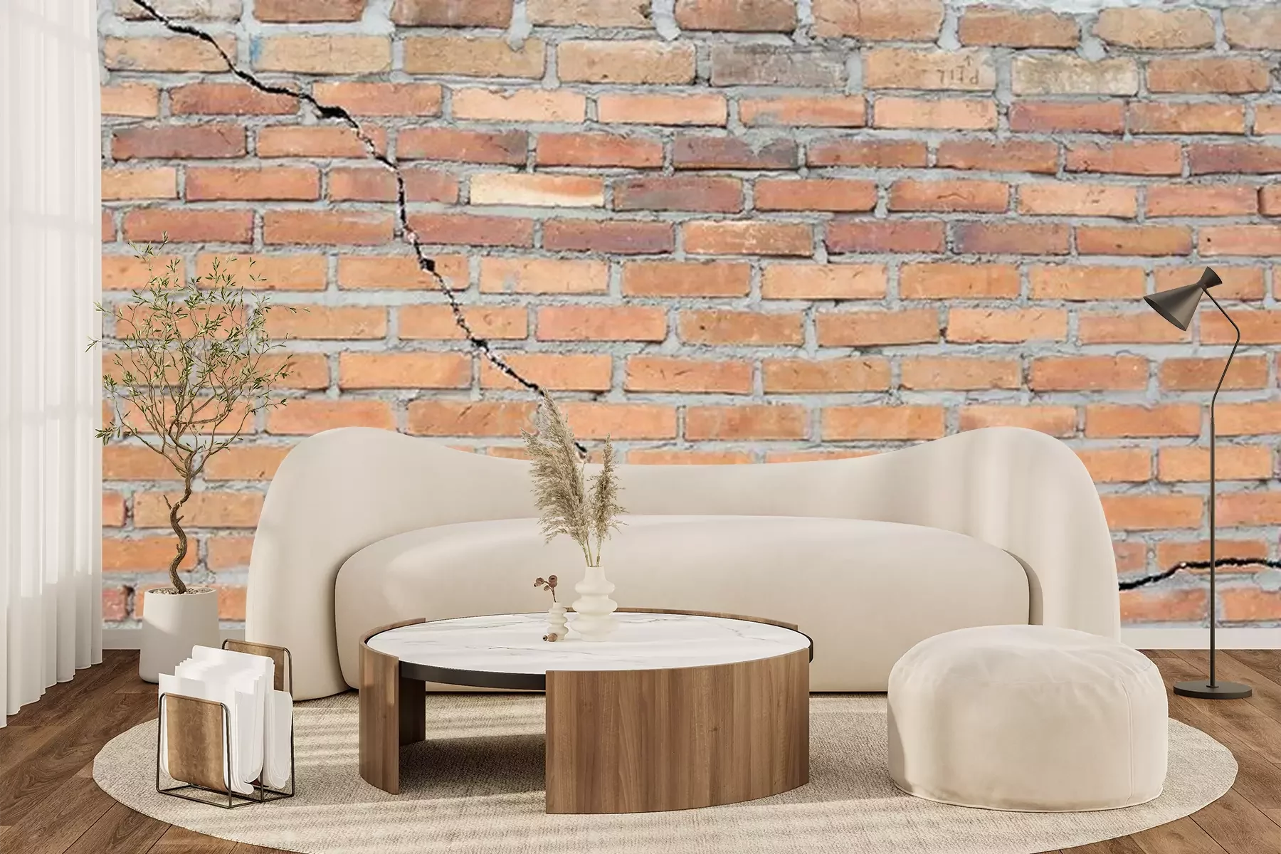 Papier peint  Fondations fissurées en briques