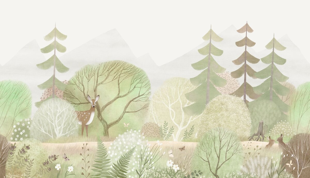 Papier peint : Forêt aquarelle plantes et animaux de la forêt illustration
