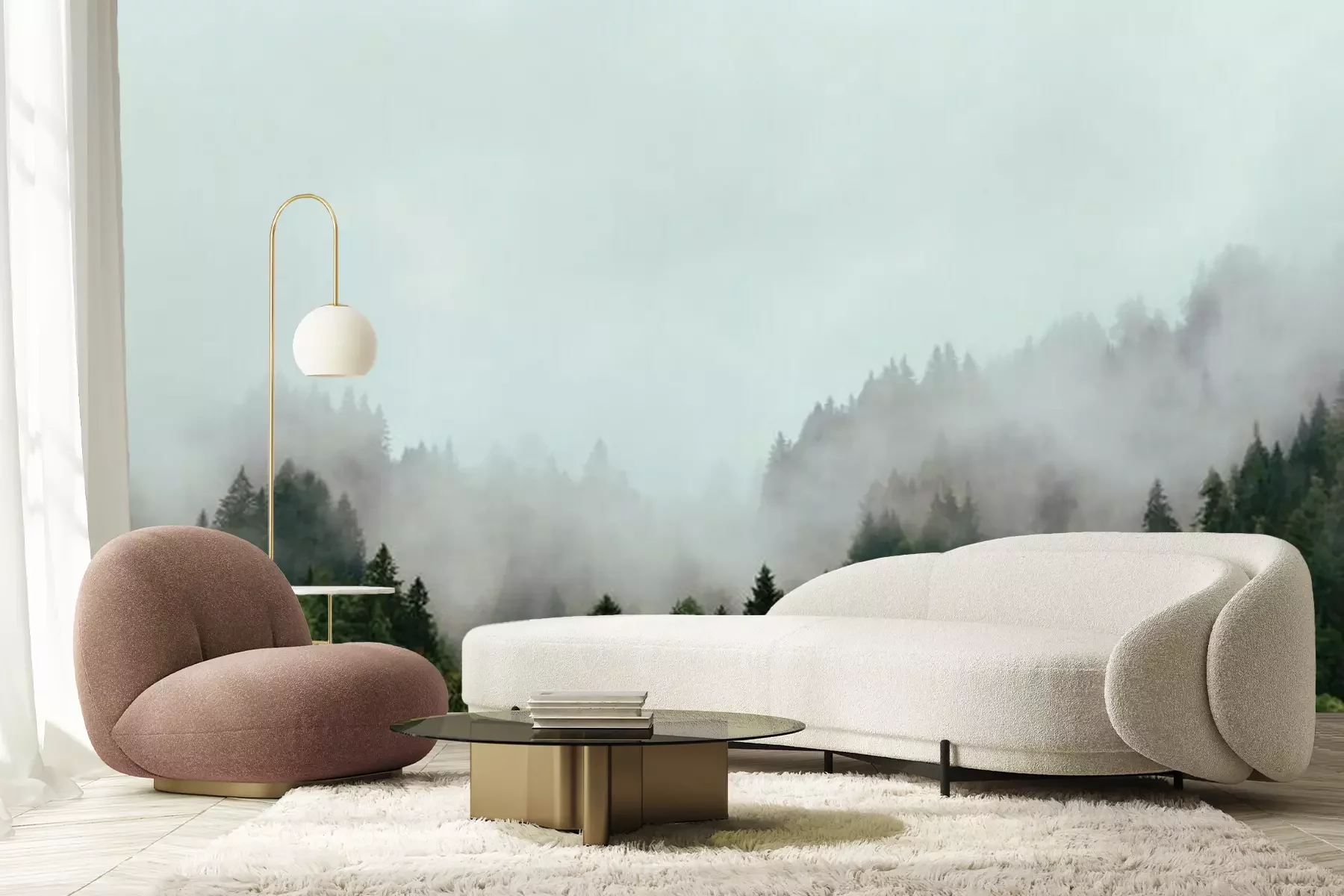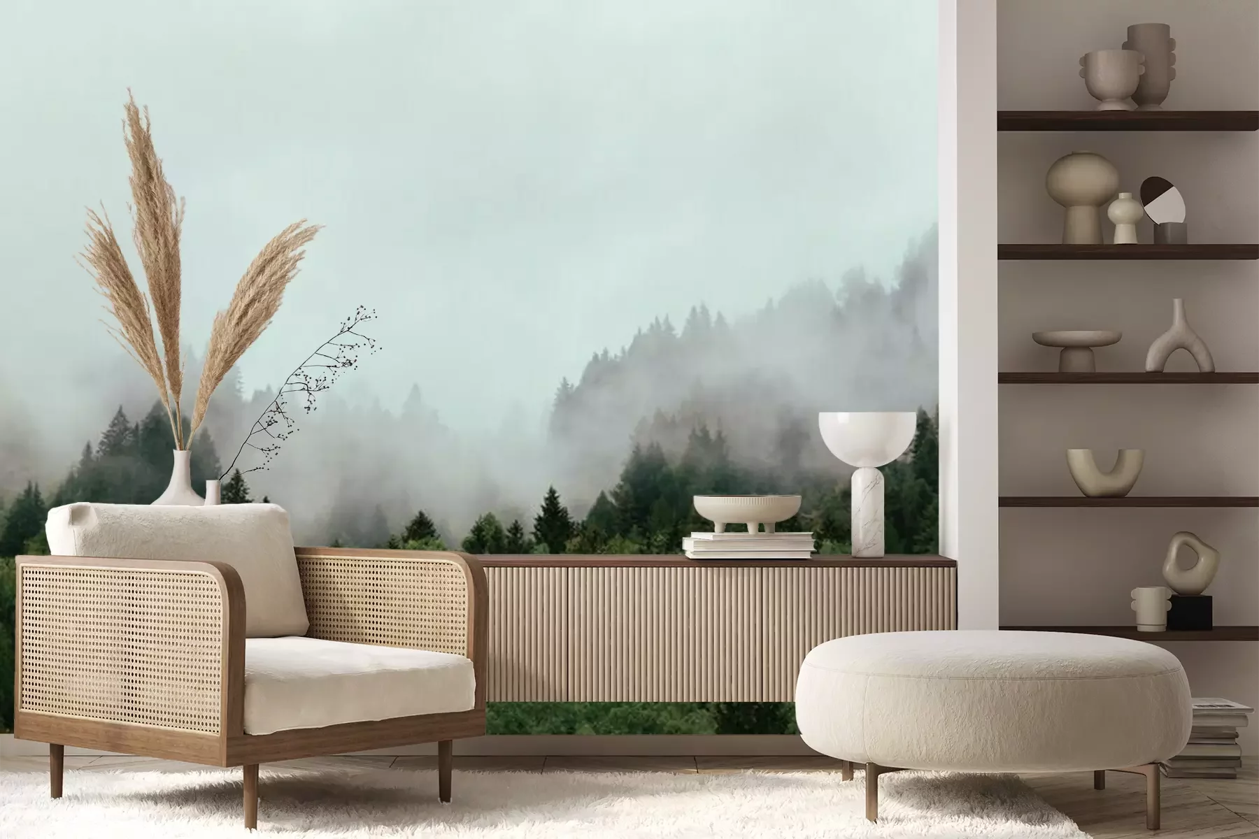 Brouillard dense sur une forêtPapier peint