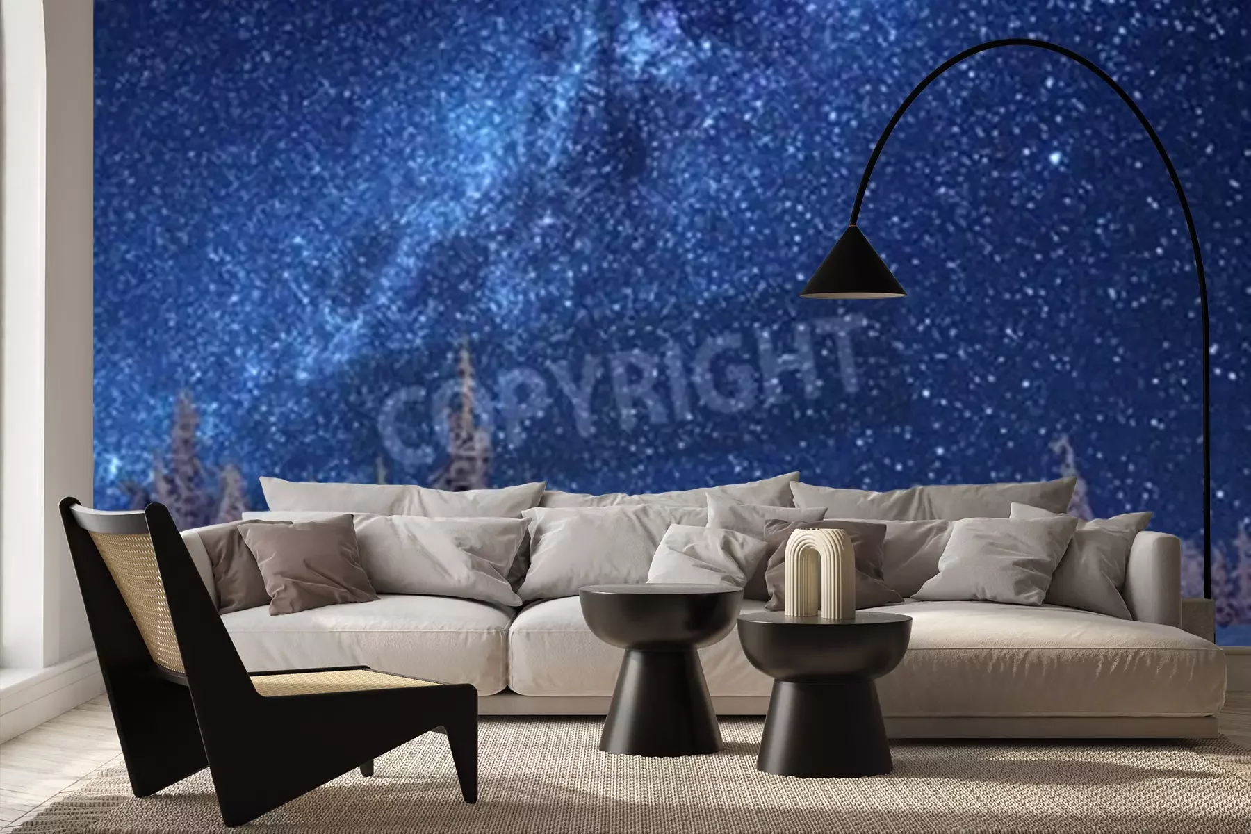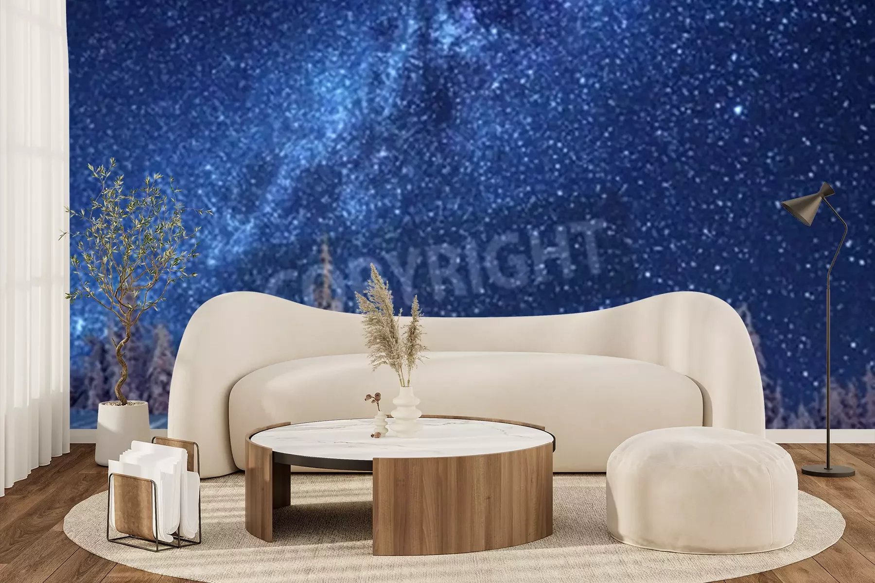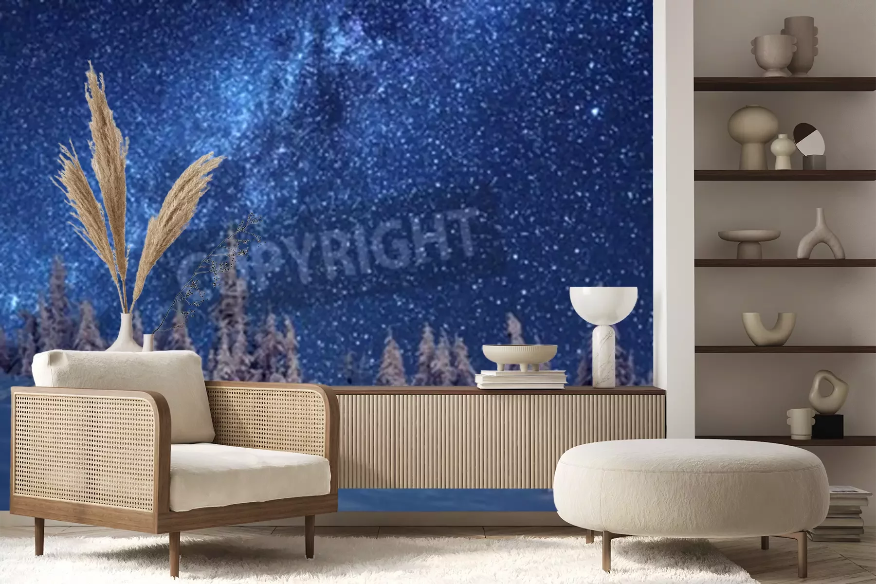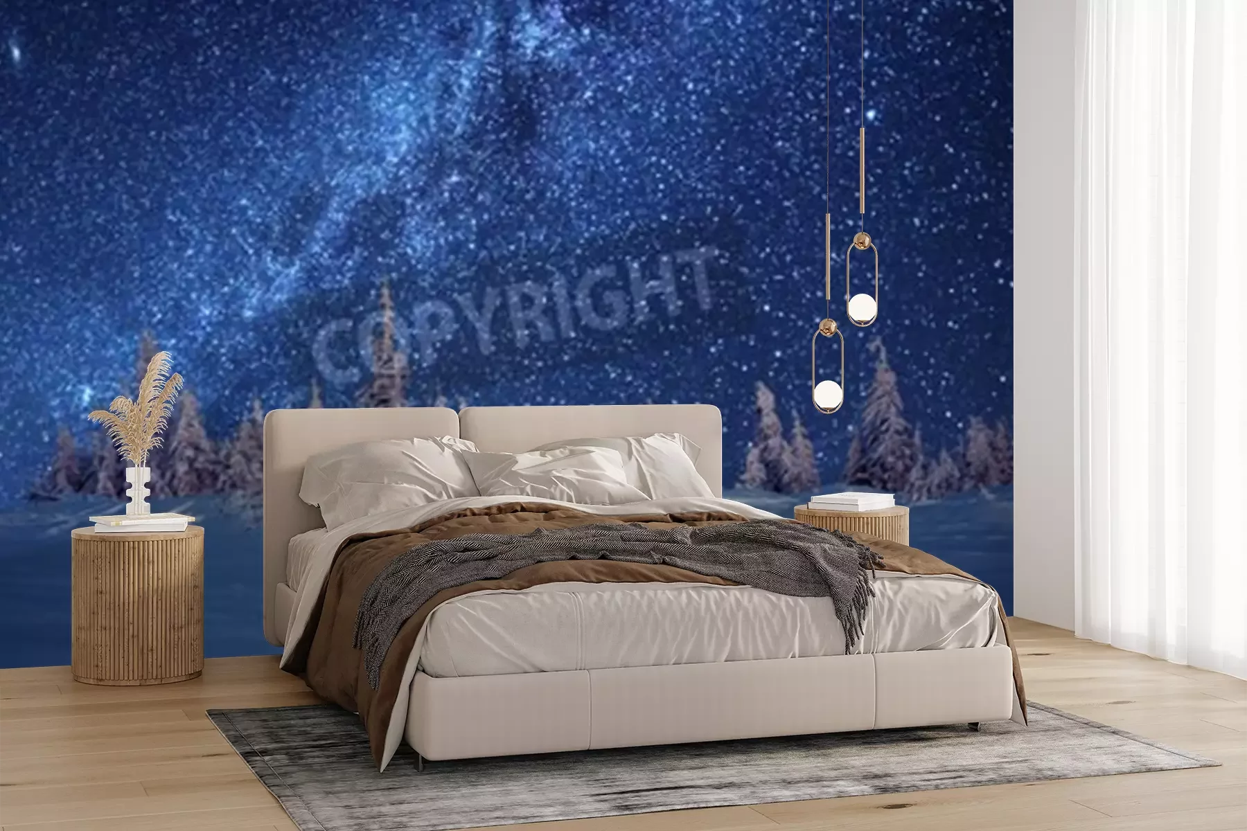 Papier peint  Forêt d'hiver et étoiles