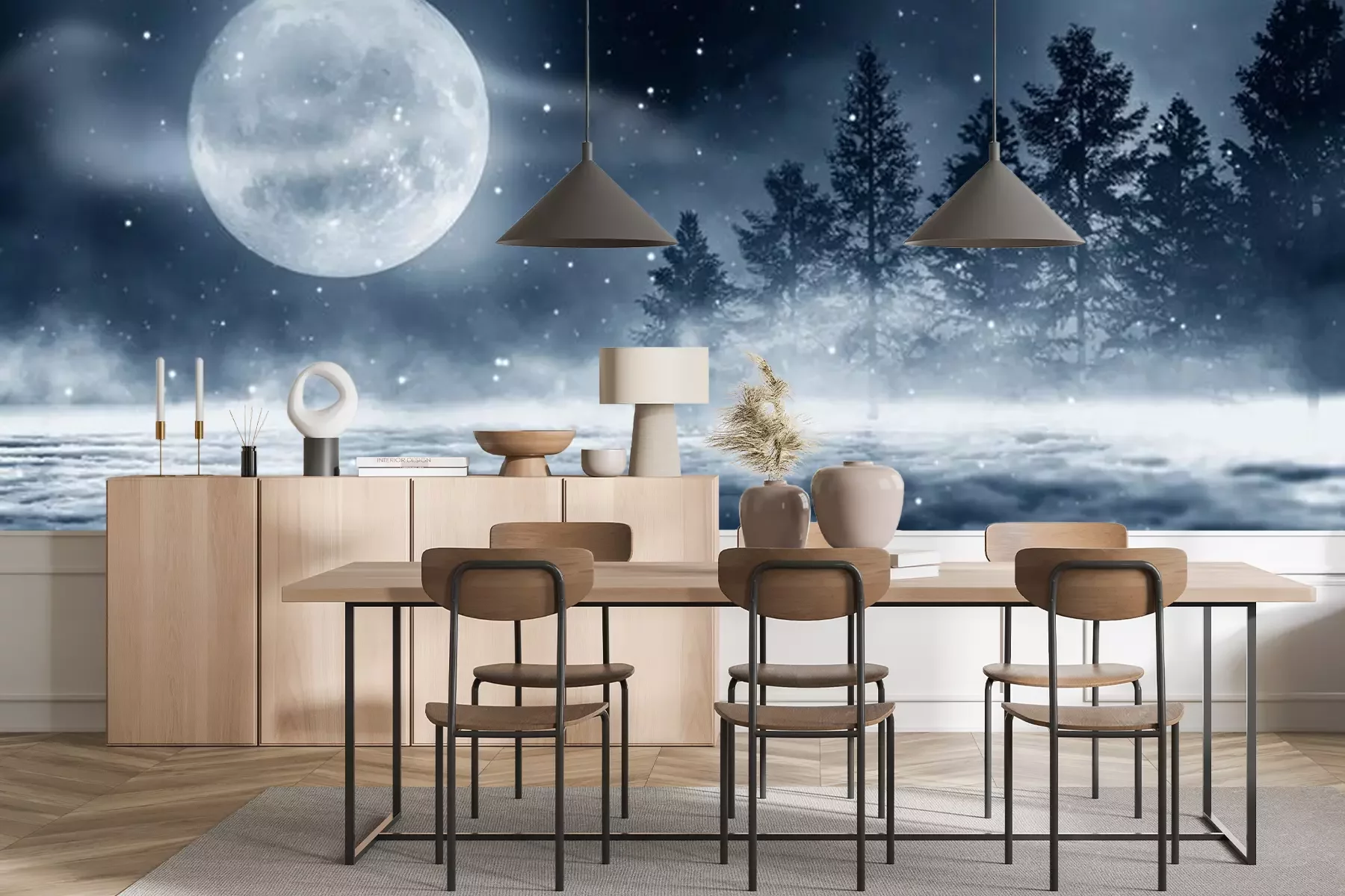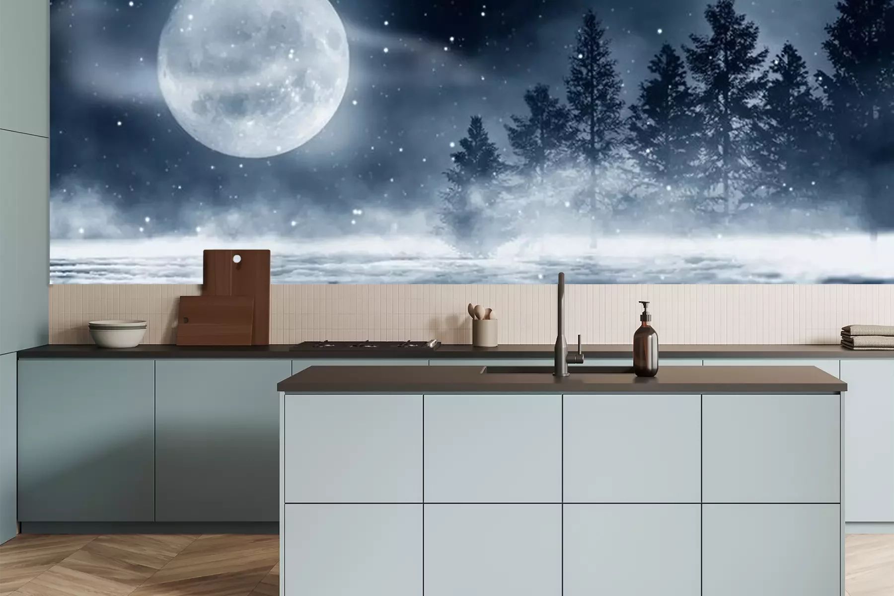 Papier peint  Forêt d'hiver la nuit au clair de lune