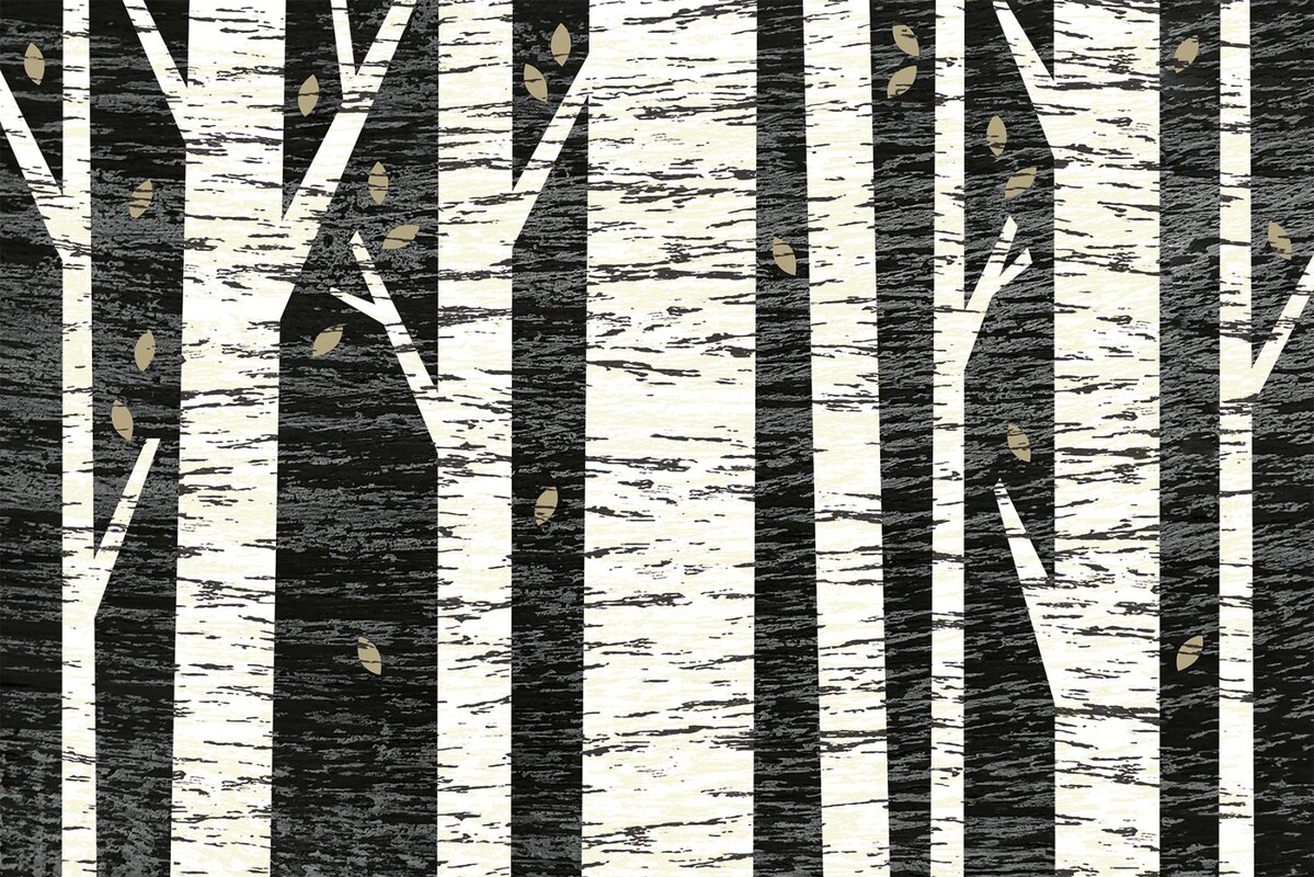 Papier peint : Forêt de bouleaux sur fond noir