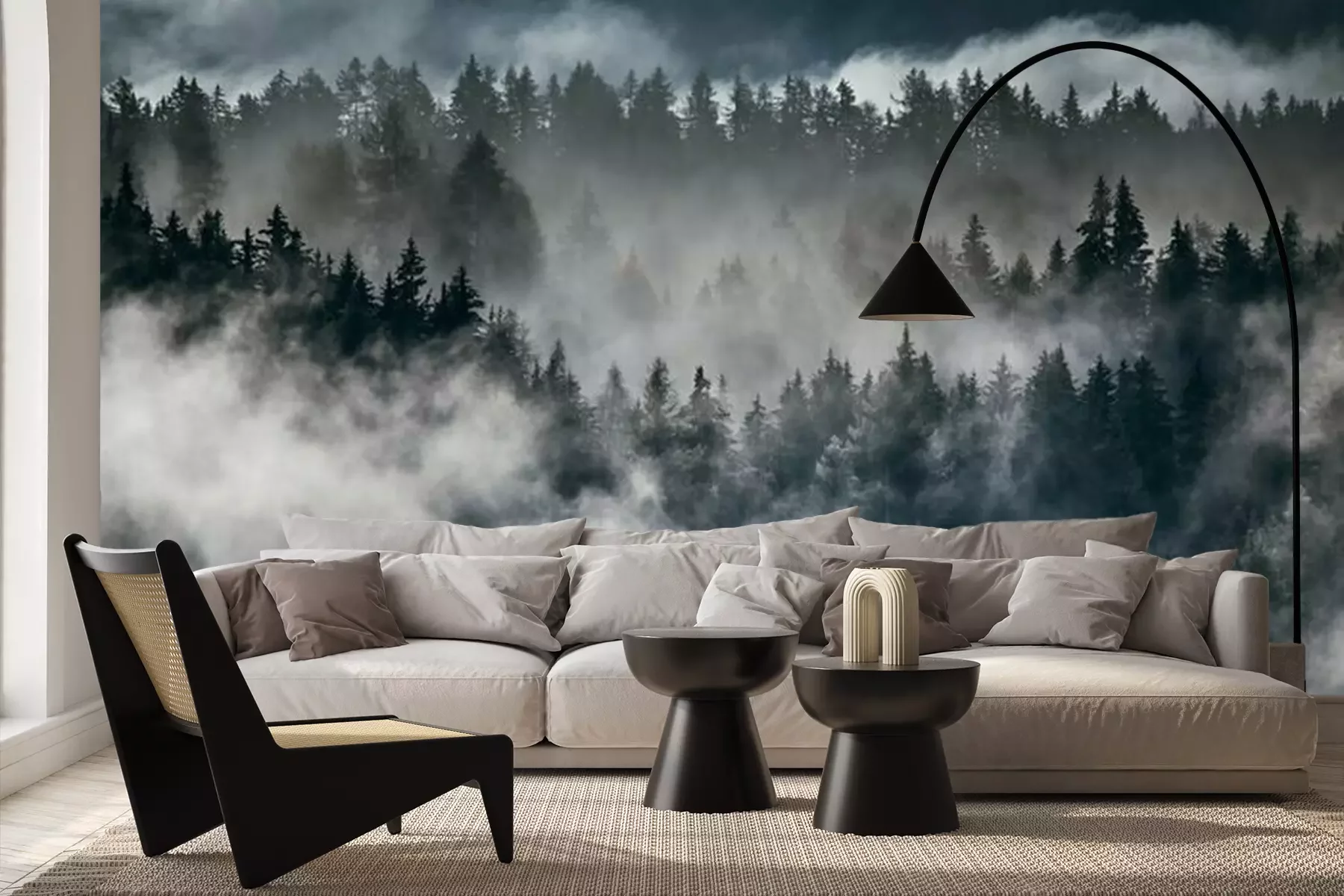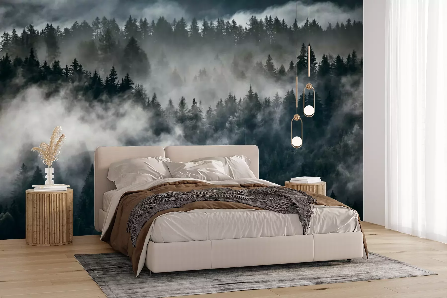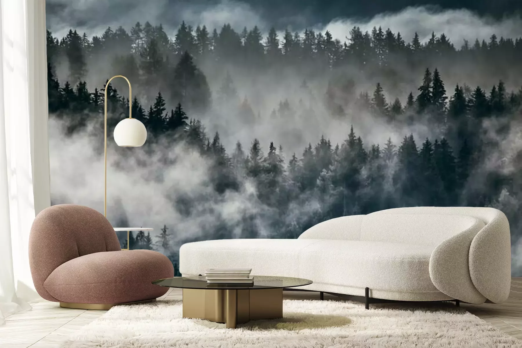 Brouillard dense sur une forêtPapier peint
