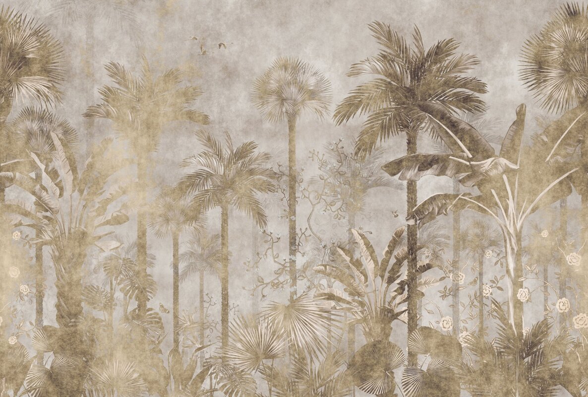 Papier peint : Forêt tropicale avec des palmiers sur béton