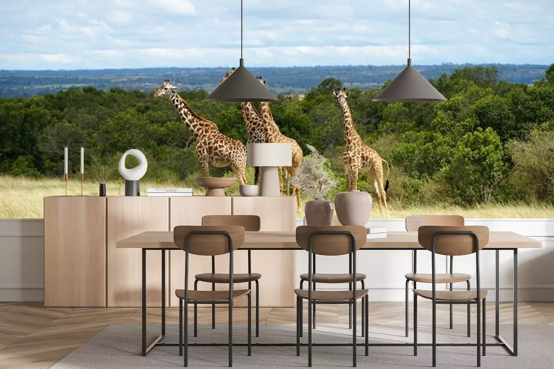 Papier peint  Free Giraffes in National Park of Kenya, Africa