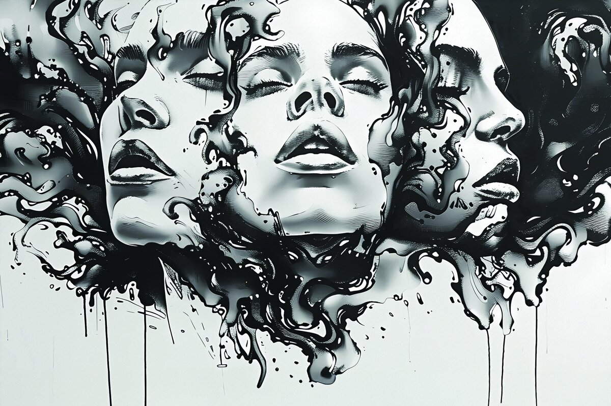 Papier peint : Fresque en noir et blanc avec visage de femme