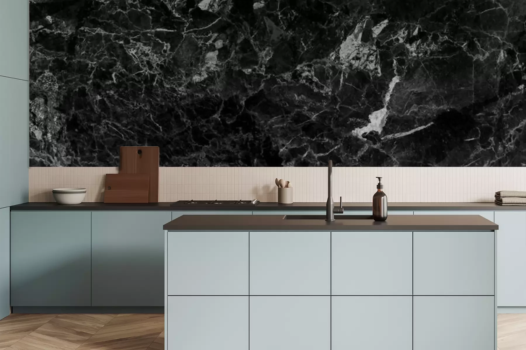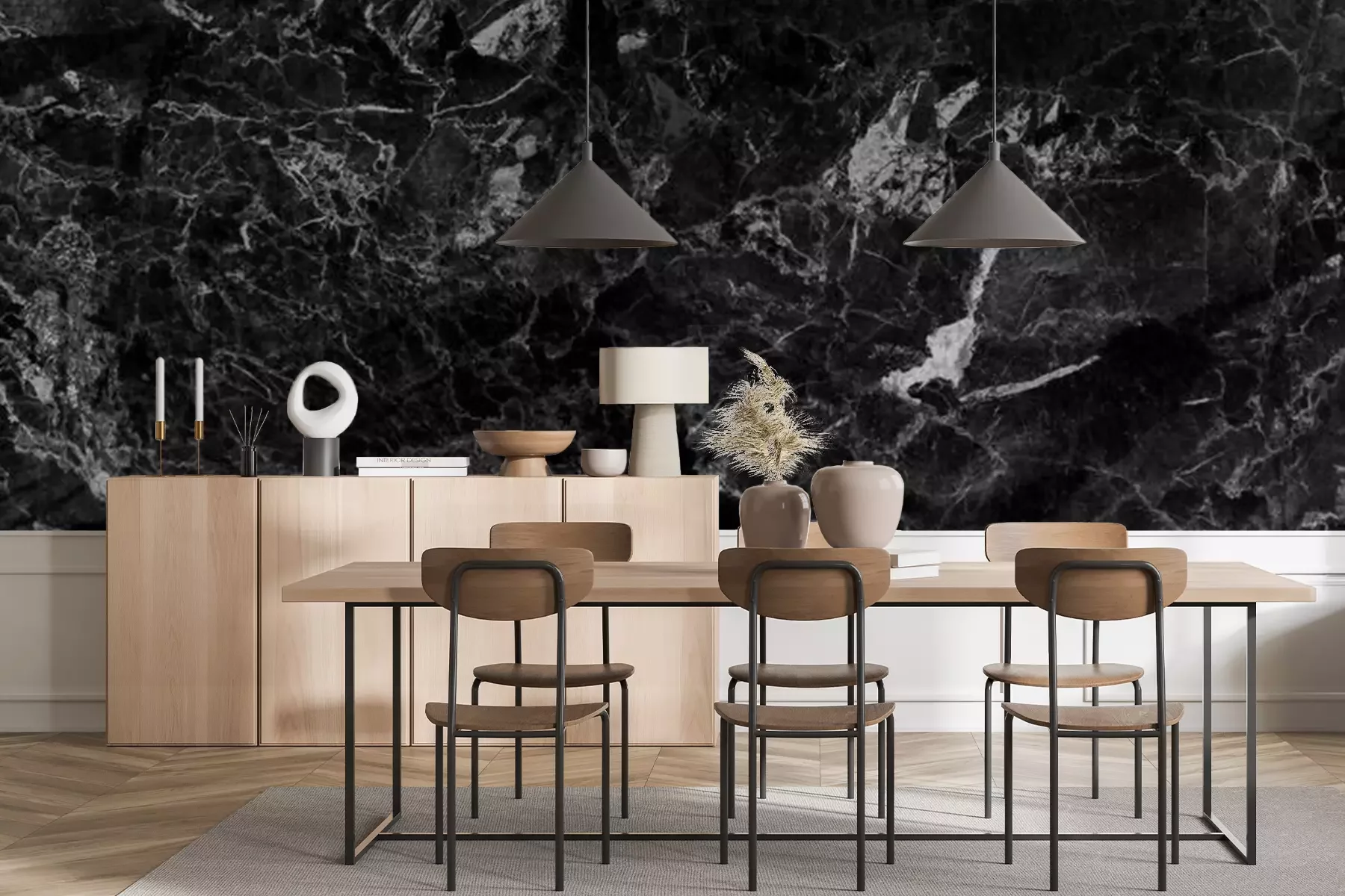 Papier peint  Fumée blanche sur du marbre noir