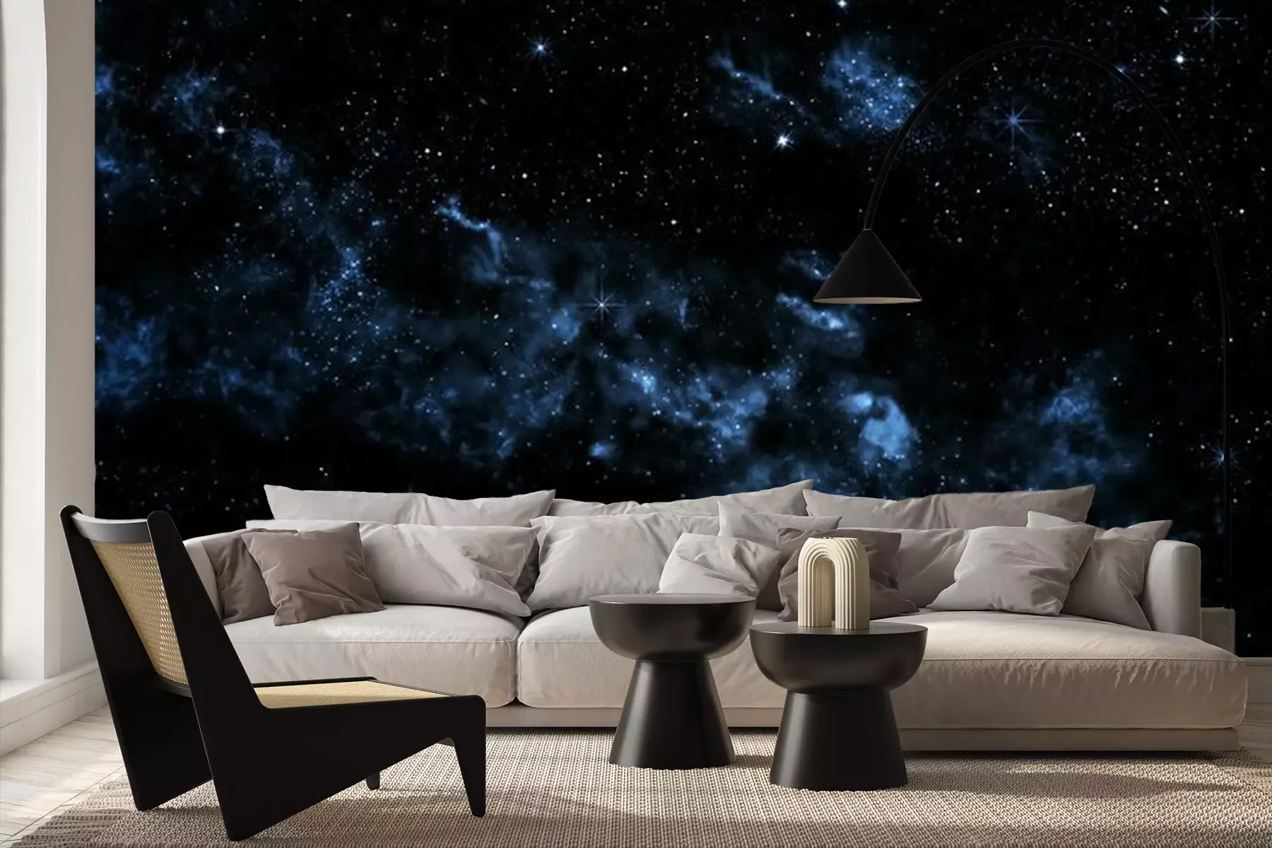 Étoiles dans le ciel avec une nébuleuse bleueTableau