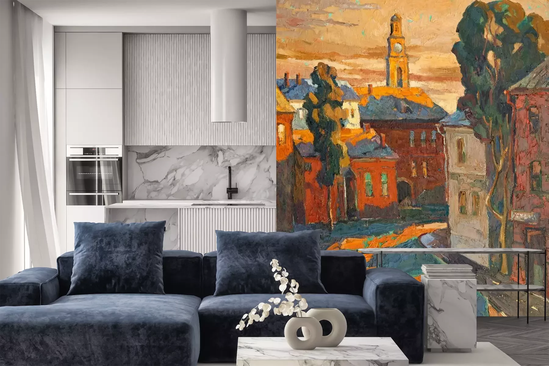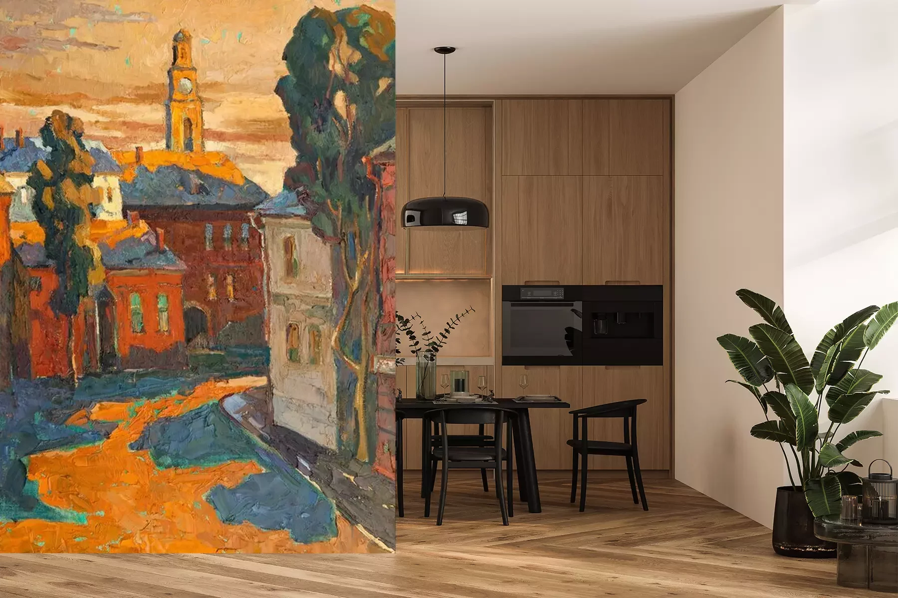Papier peint  Genre sur la ville, de l'huile sur une toile