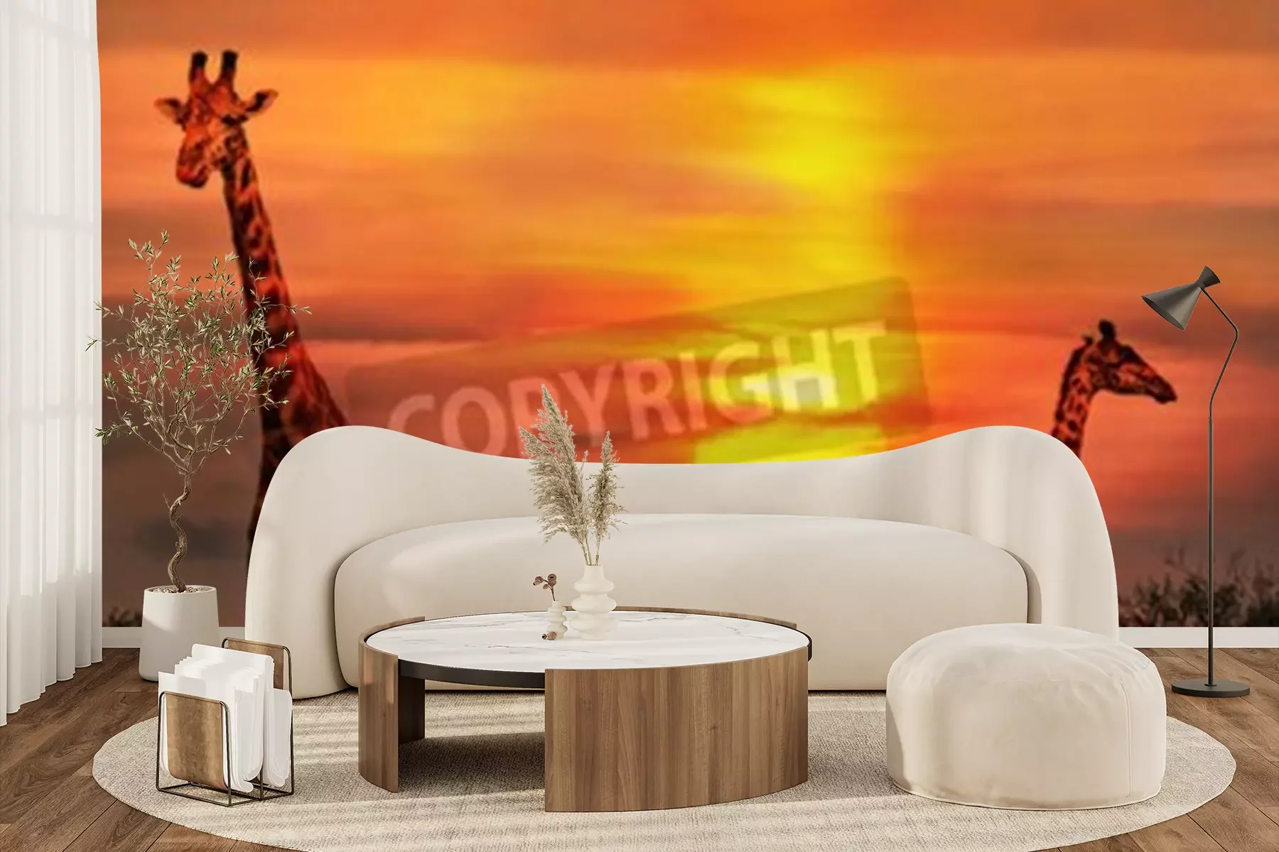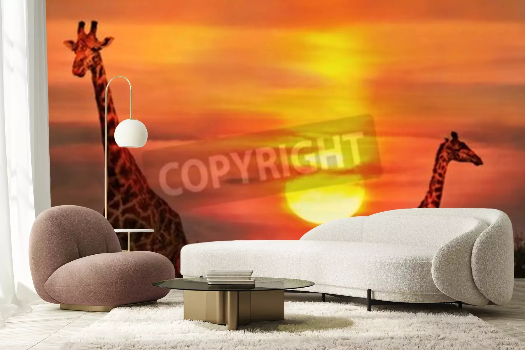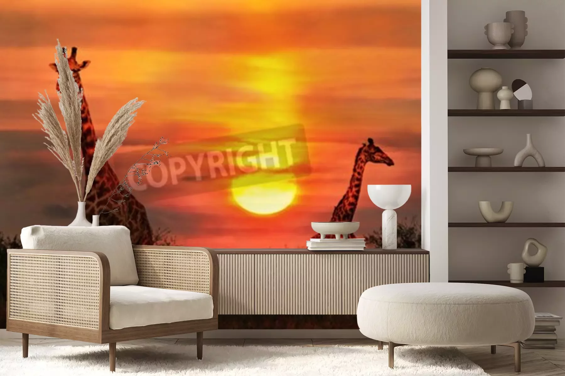 Papier peint  Girafes et coucher de soleil