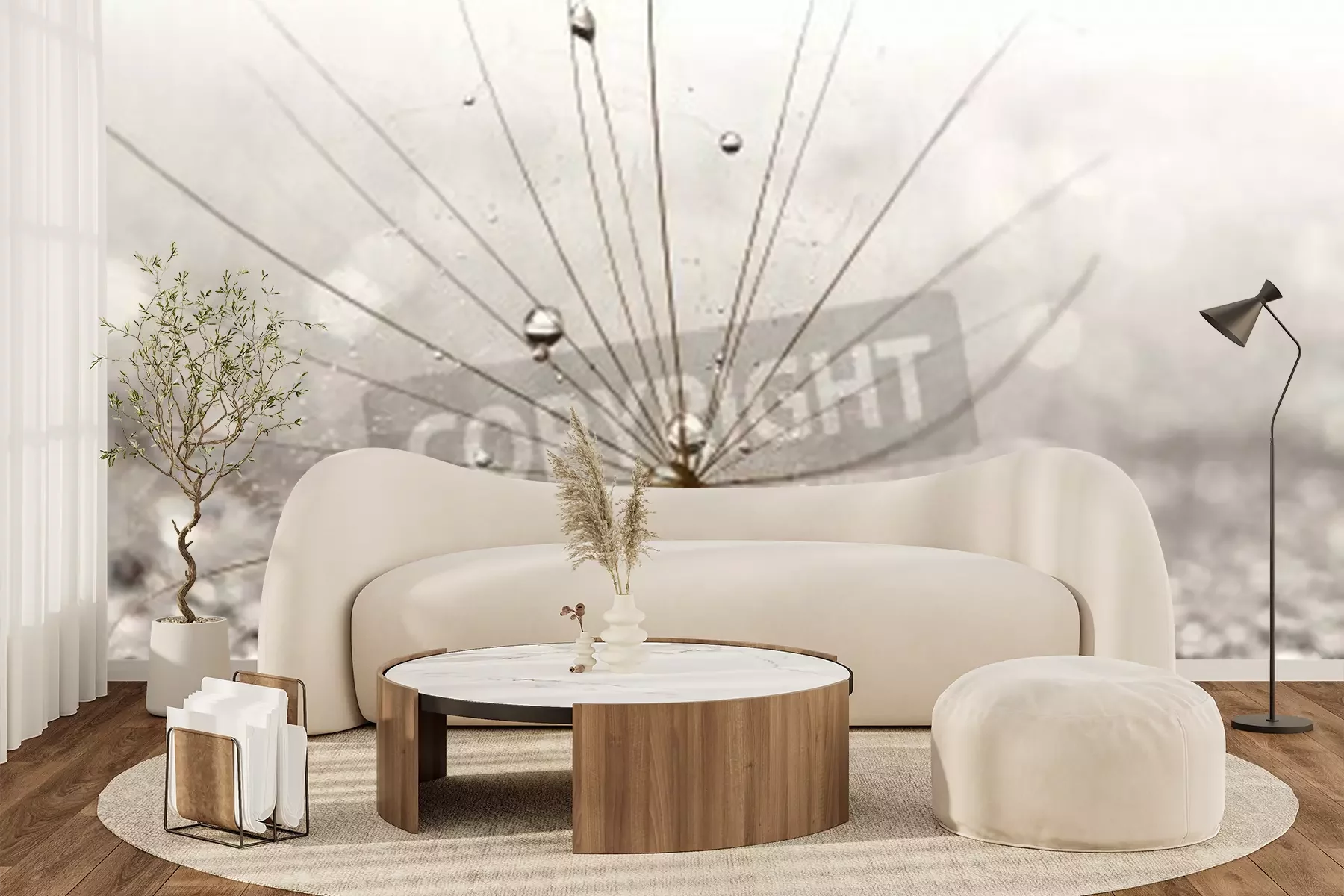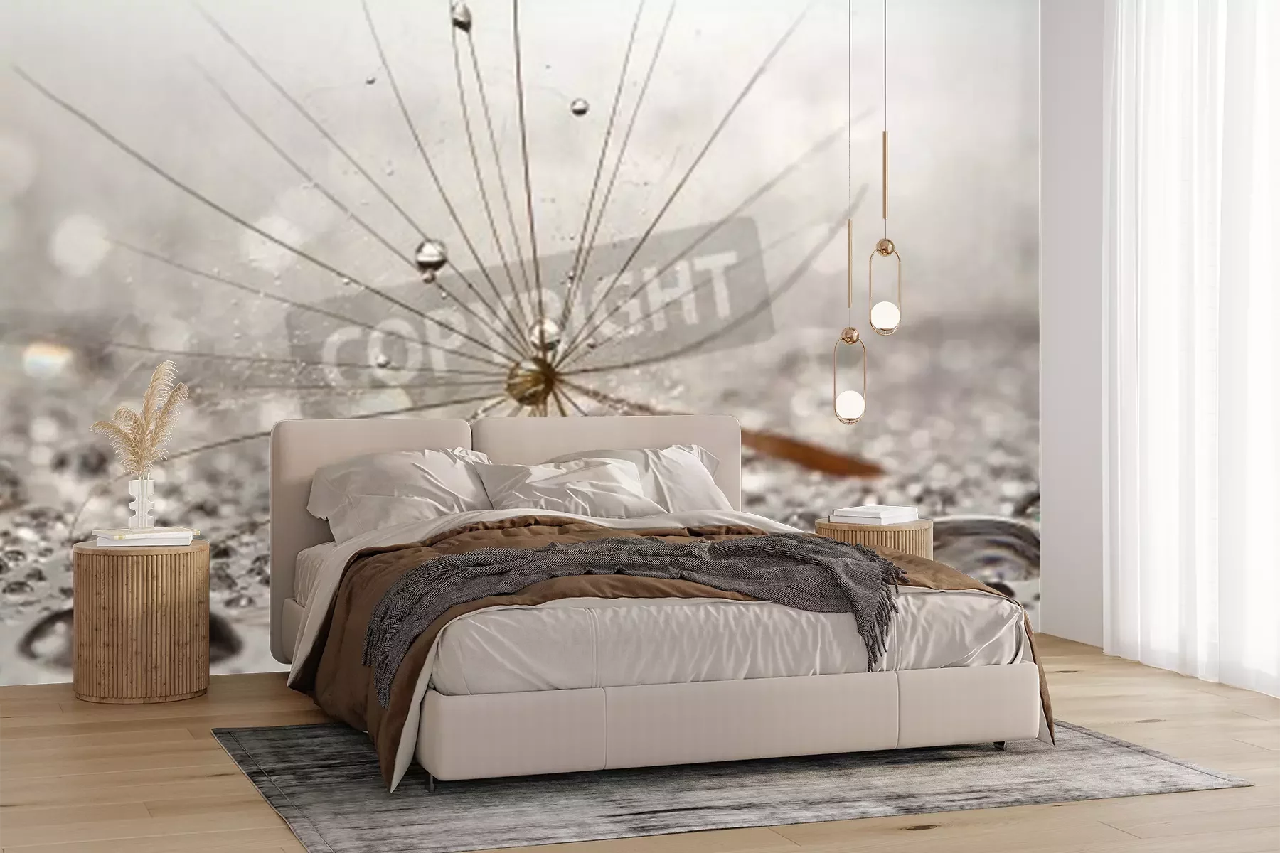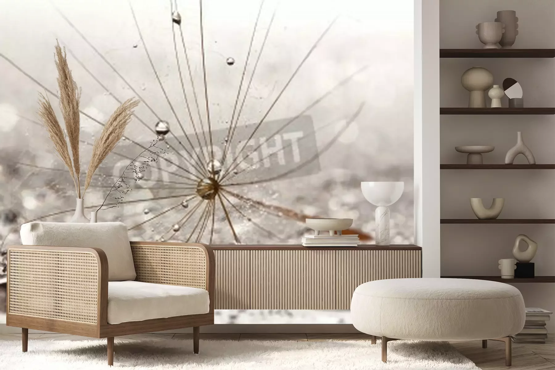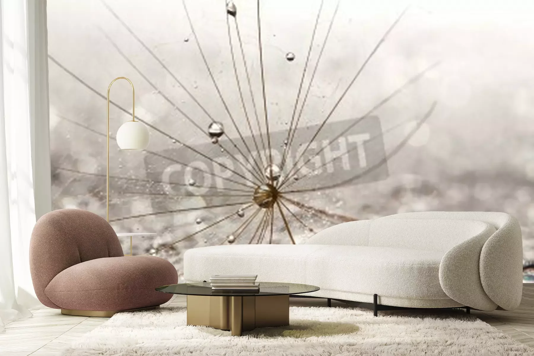 Papier peint  Graines de pissenlit et gouttes d'eau