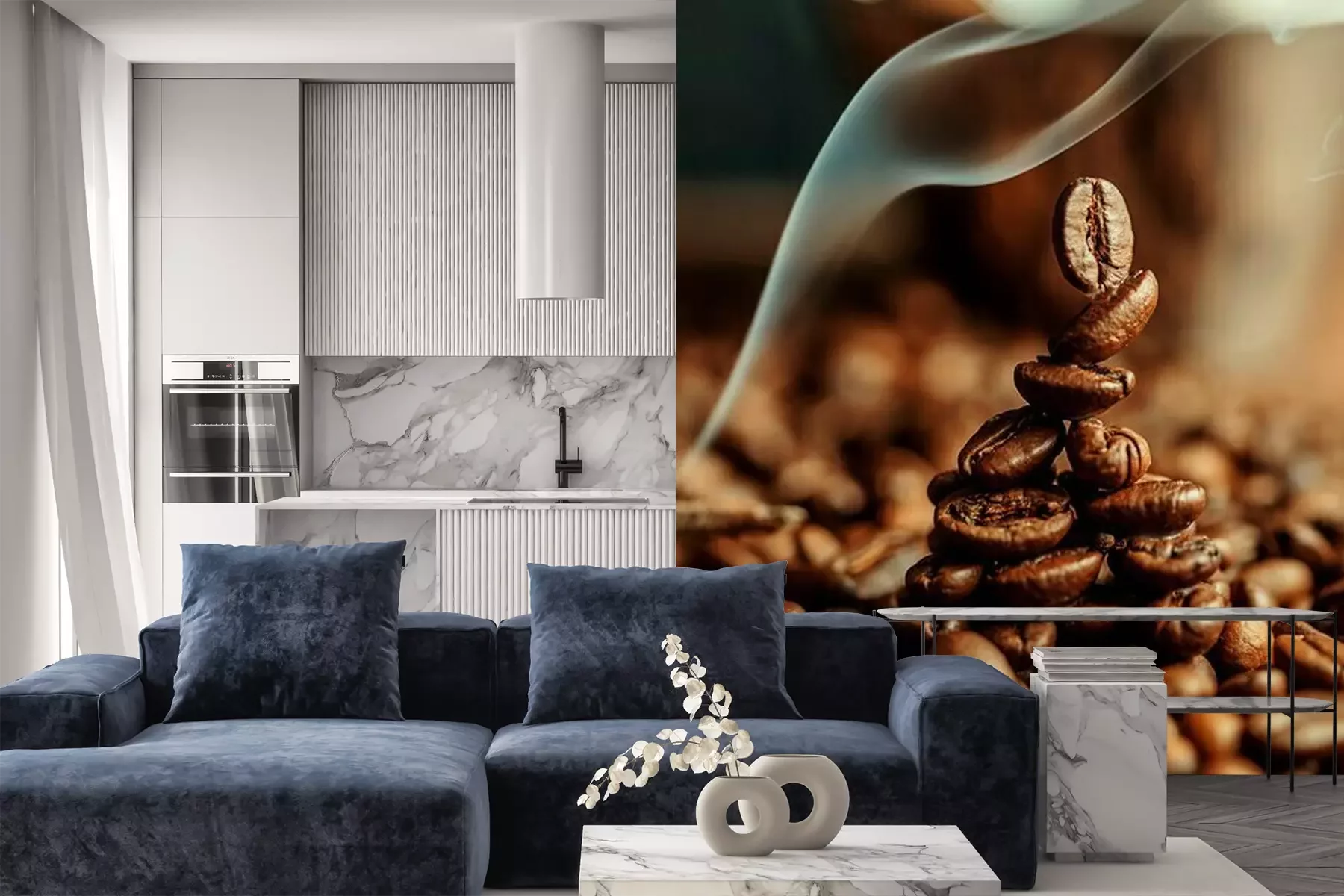 Papier peint  Grains de café et vapeur chaude