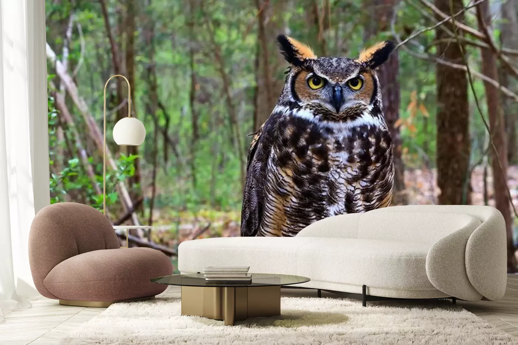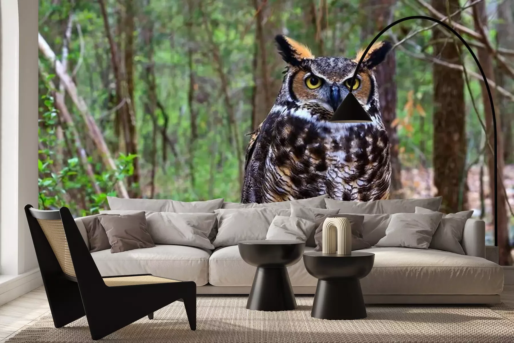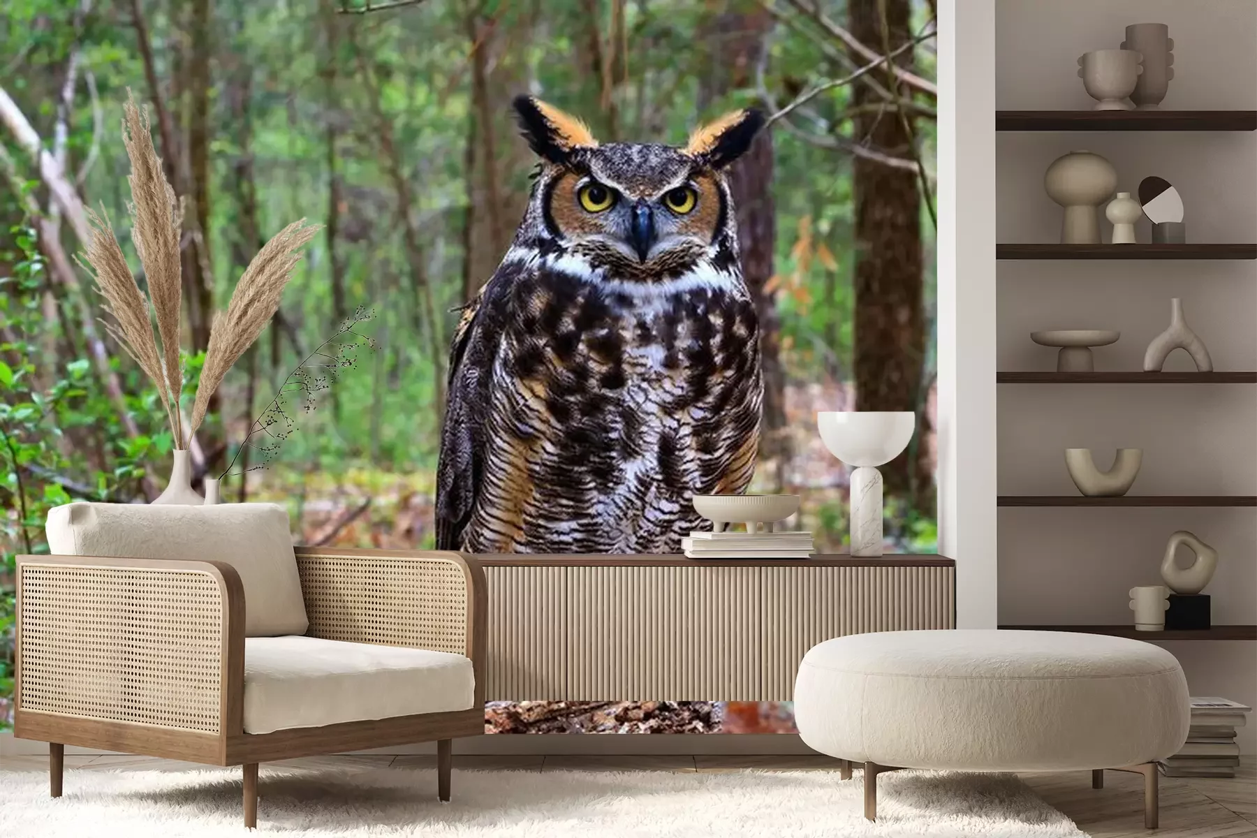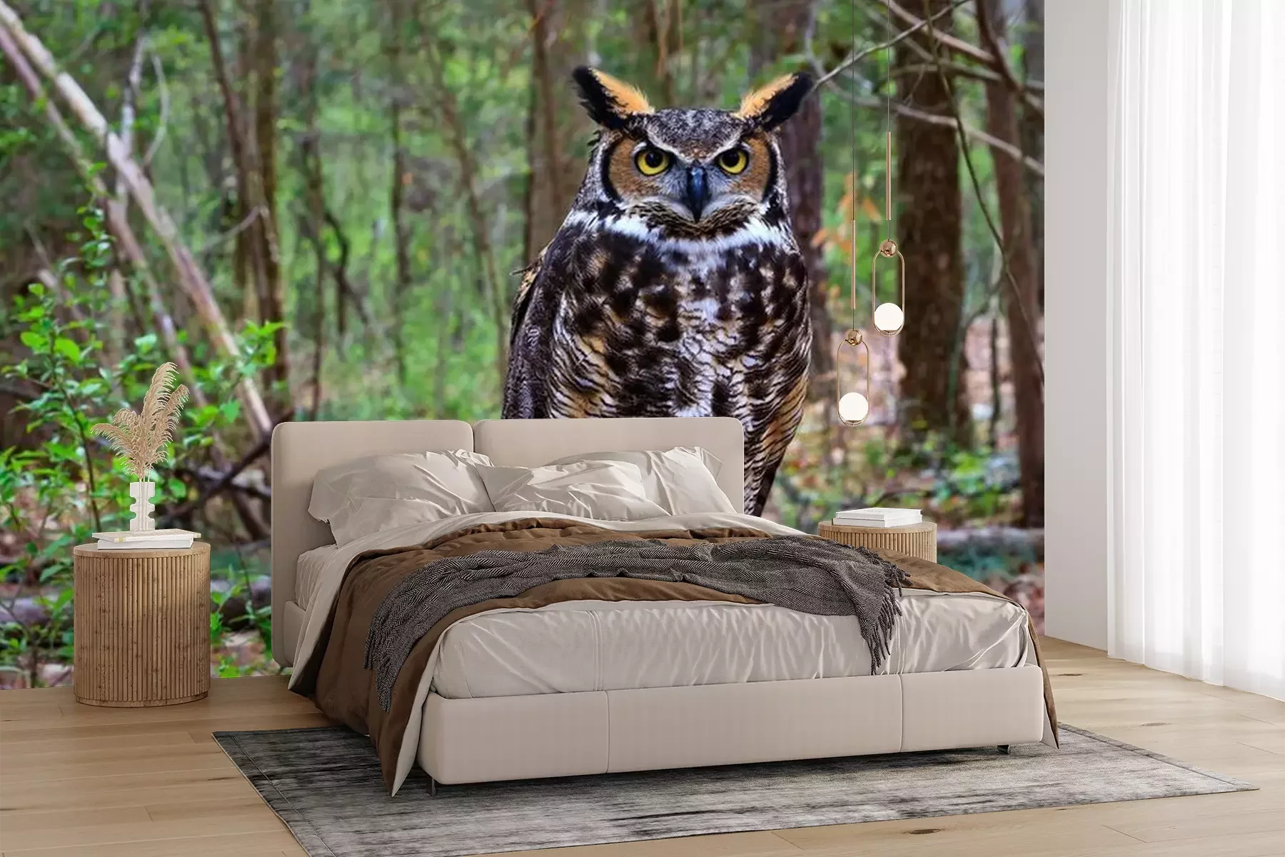 Papier peint  Grand-duc d'Amérique se tenant sur un tronc d'arbre