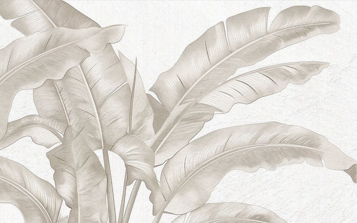 Papier peint : Grandes Feuilles Tropicales en Beige sur Fond Clair