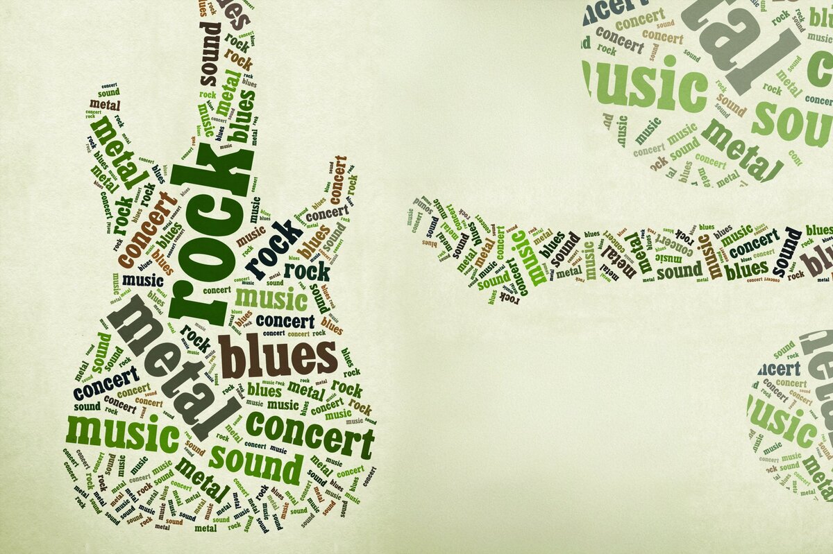 Papier peint : Guitare verte abstraite avec des inscriptions